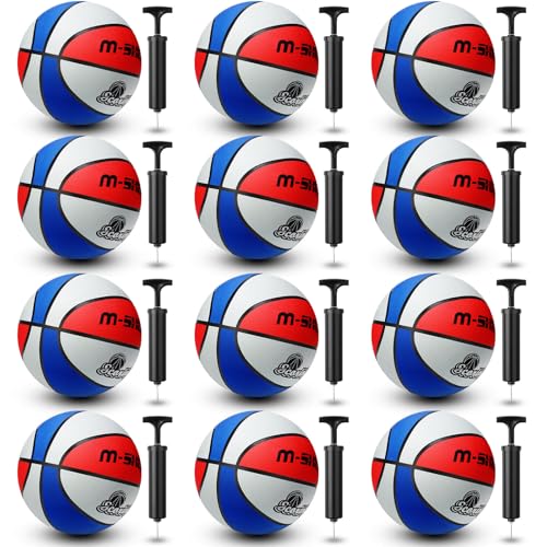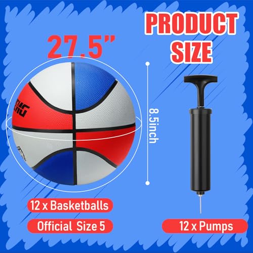 Package Included: you will receive 12 pieces rubber basketballs for kids bulk with 12 pieces portable air pumps, which can be easily inflated to meet your needs of large quantities, you can share these official size basketballs bulk with your family or give them as gifts to others, they are also ideal supplies for school activities, basketball teams or club competitions