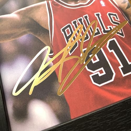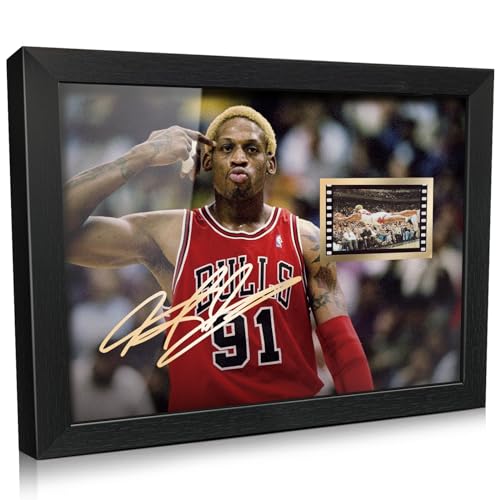 ORIMAMI committed to designing more high-quality collectible gifts and home office decor for huge basketball and soccer fans,suitable for any occasion;The receiver will like it The Pichture Signed:Our designs feature a digital reprint of the original autograph;They are printed,not hand signed originals Amazing Film Recored Display: There is 1x 35mm film showing one scenes of Chicago Bulls VS Golden State Warriors FEB.22,1997,Dennis Rodman Fans Favourite Rodman Poster: This can be a collectible Dennis Rodman framed poster that huge basketball fans will love;Dennis Rodman is likely one of the most controversial basketball players in the NBA;bad boy of basketball Being the best rebounder in NBA history,there is not any doubt that Rodman made a name for himself in the league;Dennis Rodman was probably the most rivals Jordan had to conquer on his way to his first run of three straight NBA titles;And Rodman then became probably the most teammates who helped Jordan pull off his second three-peat;This black frame made of high-quality MDF wood,high transparent PMMA panel;HD printed picture more clear;Picture size:8×6 inches,Framed size:9x7x0.5 inches(23x18x1.2 cm).Framed type is desktop enhance A great memorabilia gift and a perfect addition to your home decor;Must you have any doubt please contact us before purchase,and will do all we will to unravel any problems;If you don’t seem to be satisfied with our products,and we provide up to 30 days of exchange or refund services