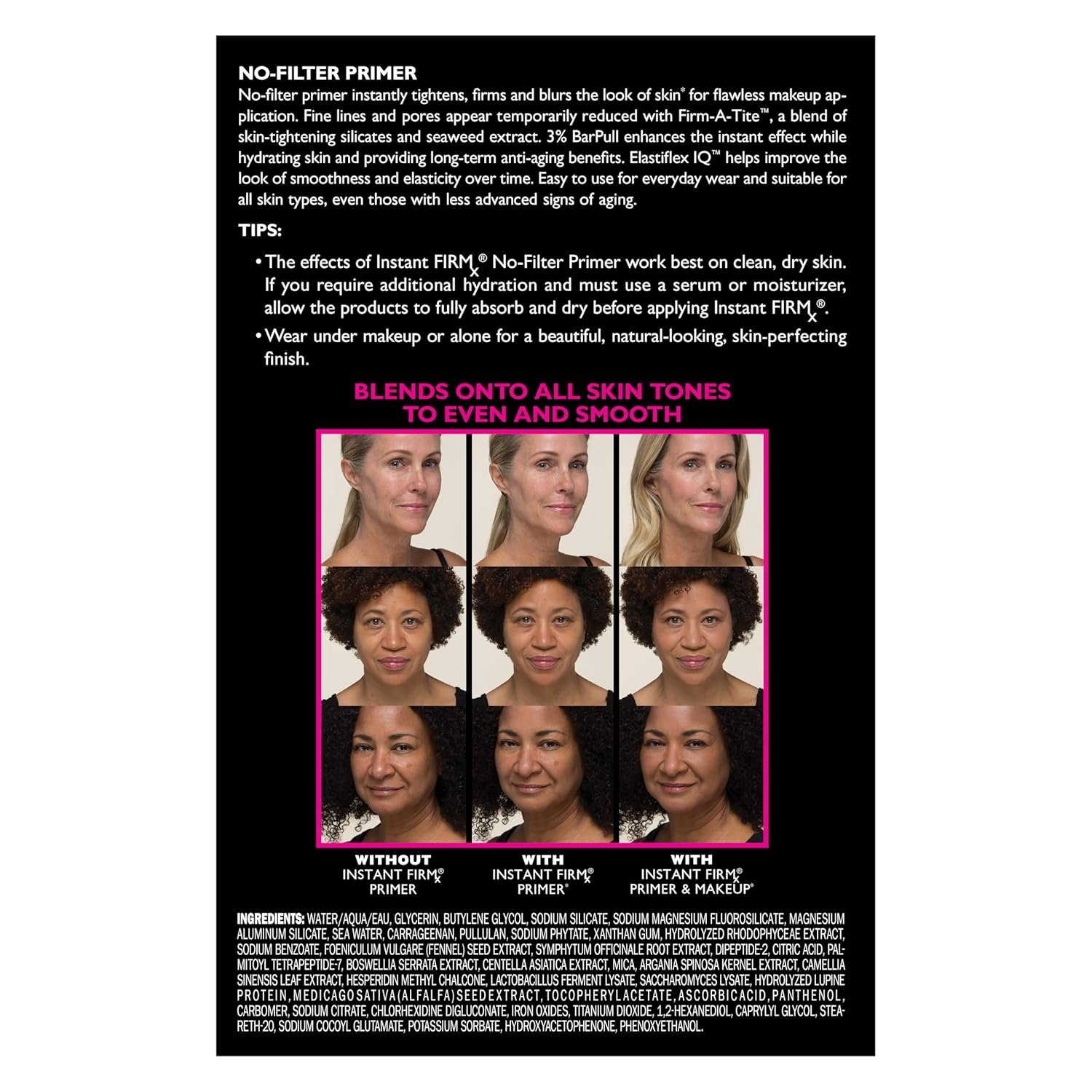 TIPS: The effects of Instant FIRMx No-Filter Primer work best on clean, dry skin. If you require additional hydration and must use a serum or moisturizer, allow the products to fully absorb and dry before applying Instant FIRMx. Wear under makeup or alone for a beautiful, natural-looking, skin-perfecting finish.