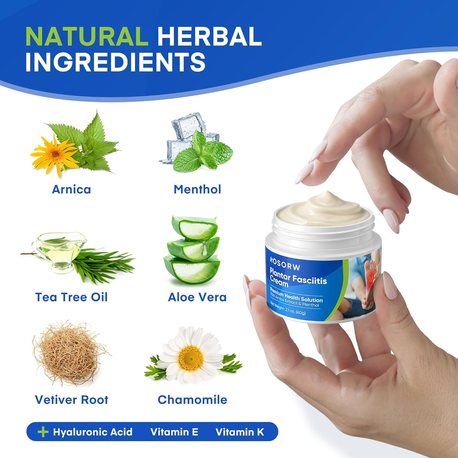 AOSORW offers a range of natural products, including our plantar fasciitis cream, which is designed to help relieve discomfort in muscles, joints, and feet. Our formulations focus on supporting mobility and providing comfort for everyday use.