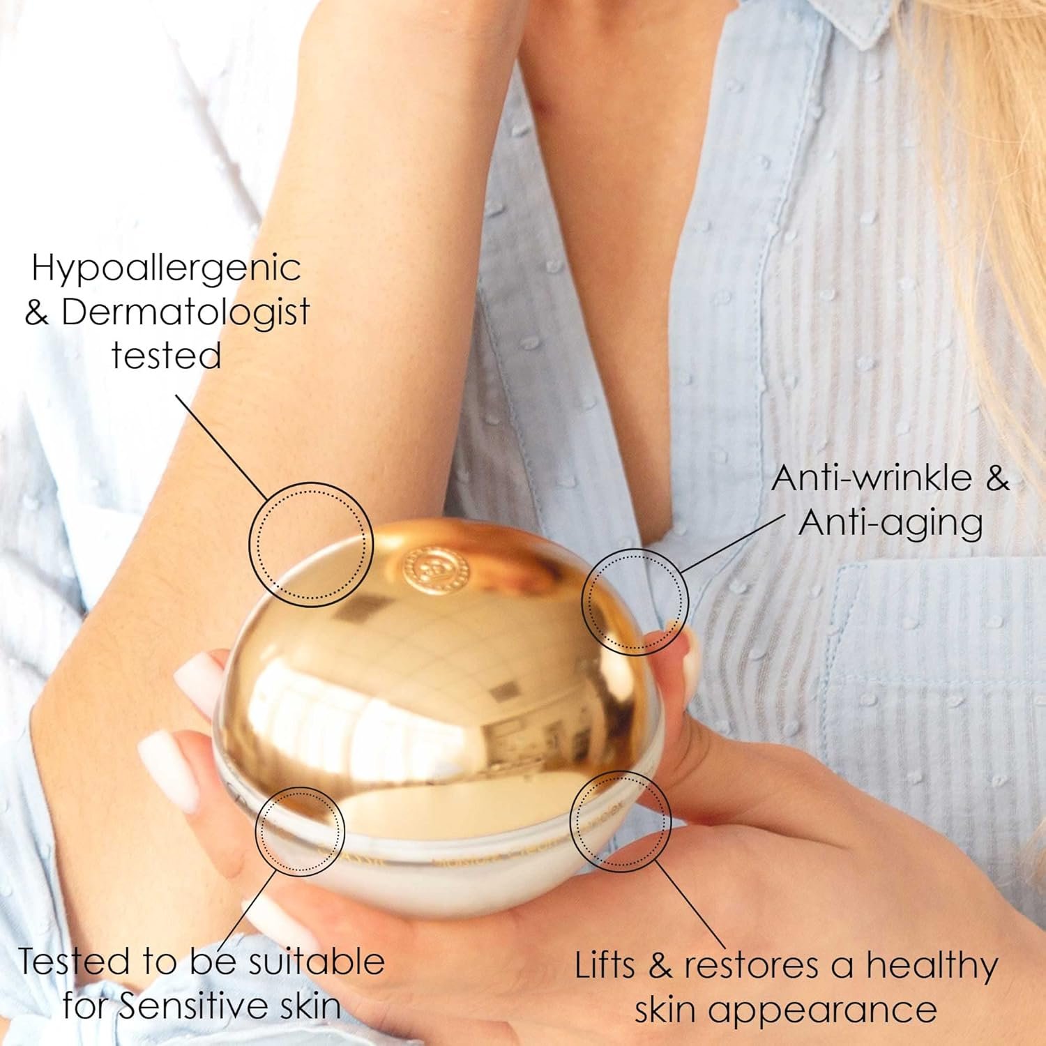 An advanced anti-aging, hypoallergenic, dermatologically tested secret process formula that helps combat the signs of skin aging while you sleep. It is a leading cream with Dead Sea minerals, liposome complex of natural plant extracts, vitamins A and E and Beta Carotene to give your skin support. Suitable for sensitive skin, for a beautiful unified appearance.