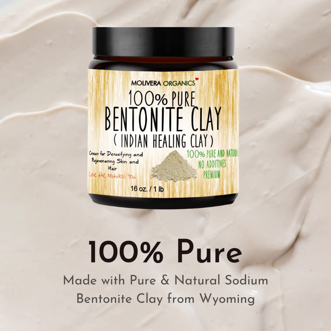 Molivera Organics Bentonite Clay for Detoxifying and Rejuvenating Skin and Hair, 16 oz.