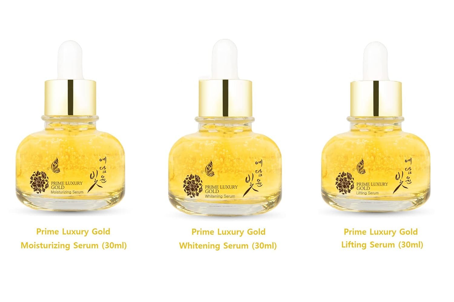 Prime Luxury Gold Intensive Emulsion: Both phyto placenta and royal jelly extracts provide abundant nutritions to dried skin and relaxed and smooth feeling to form moisturized membrane on the skin so as to make you feel moisturized, refined and soft skin.