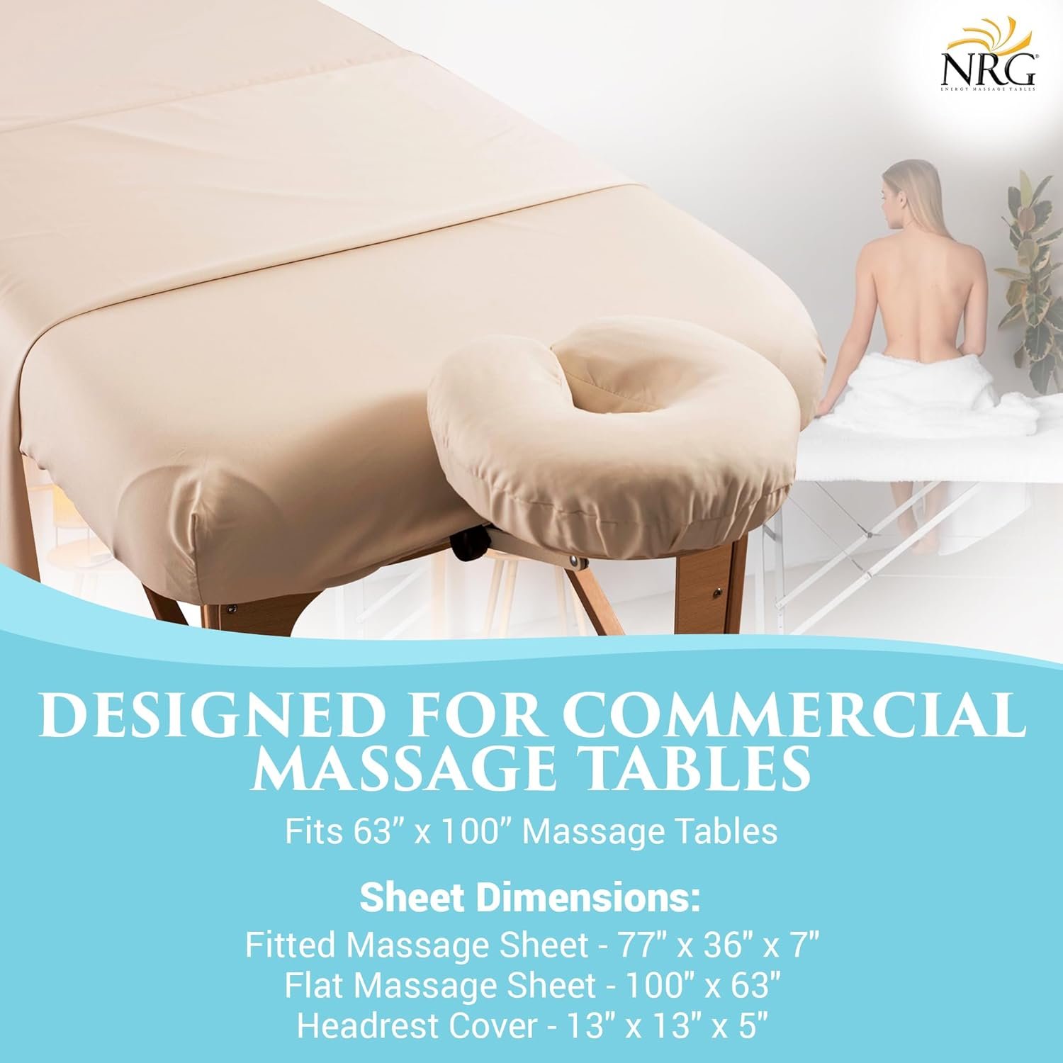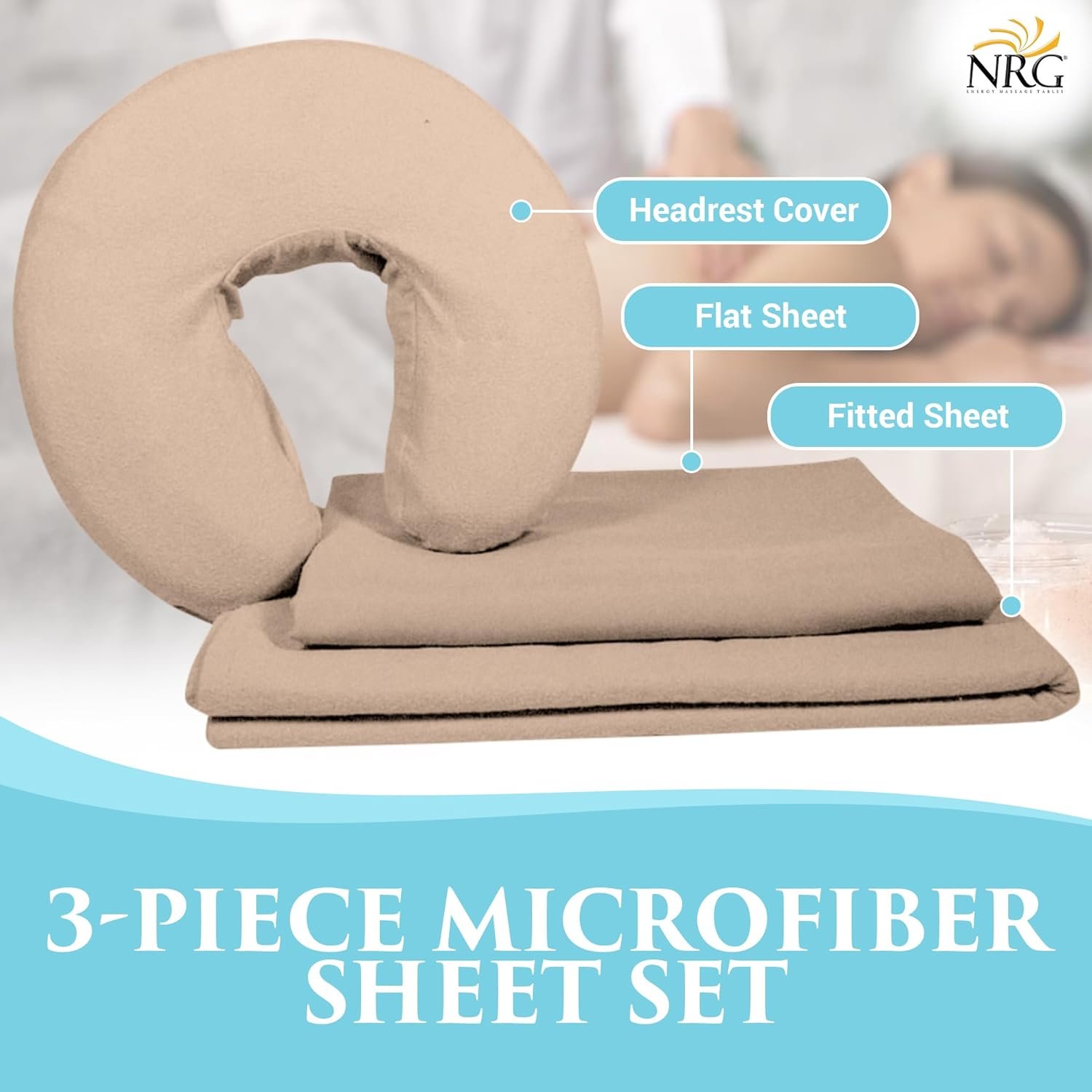 NRG PREMIUM MICROFIBER MASSAGE SHEET SETS – 3 Piece Massage Sheet Set Includes Face Rest Cover, Massage Table Flat Sheet, and Fitted Sheet