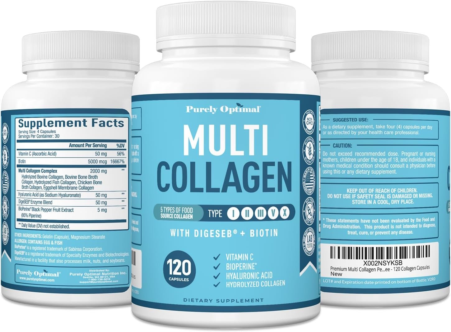 Be the first to review “Premium Multi Collagen Peptides (Types I, II, II, V, X) – Collagen Pills for Skin Care, Hair Growth, Nails & Joints – Vitamin C, Hyaluronic Acid, Biotin, Gluten Free – 120 Collagen Capsules”