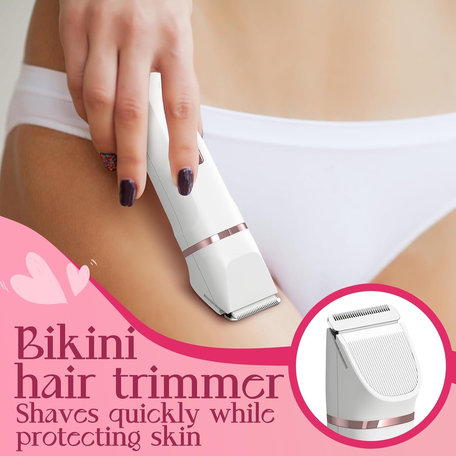 đăHYPOALLERGENIC & PAINLESSăEnjoy a pain-free shave with our bikini trimmerâs hypoallergenic stainless steel and delicate ceramic blades. These sharp, efficient blades glide effortlessly along your face and bikini areaâs contours, ensuring a comfortable and effective hair removal experience, even for sensitive skin.
