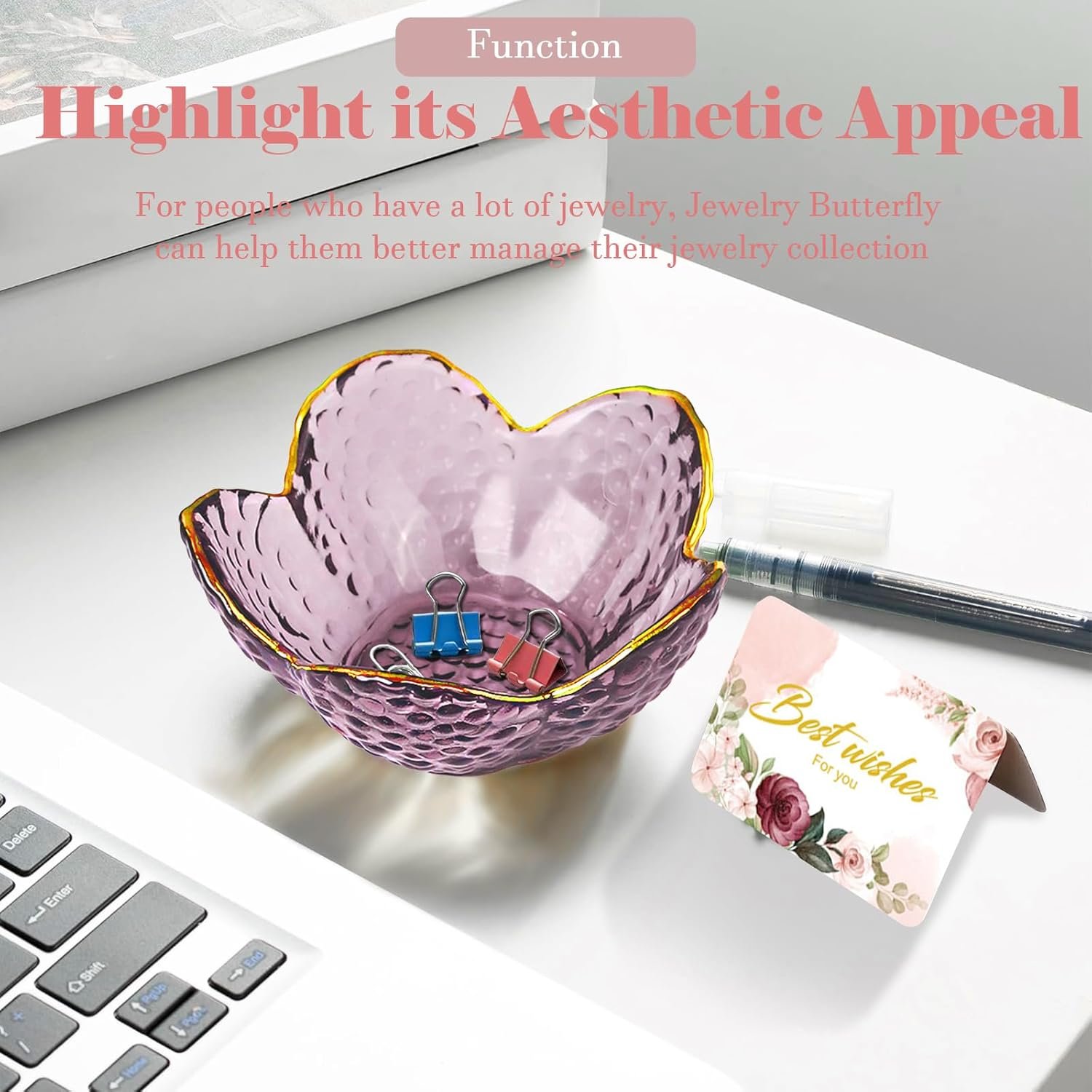 Be the first to review “Purple Flower Jewelry Dish Glass Ring Dish Jewelry Tray Cute Vanity Organiser Room Decor Aesthetic Nightstand Bathroom Decor Jewellery Trinket Dish Ring Holder Valentine’s Birthday Gifts for Women”