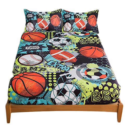 Specification: qjmiaofang Sports Sheets Full Size Soccer Fitted Sheet 3Pieces for Kids Boys Basketball and Baseball Sheets Sports Theme Bed Sheets Rugby American Football Sheets with 2 Pillowshams for Home Decor