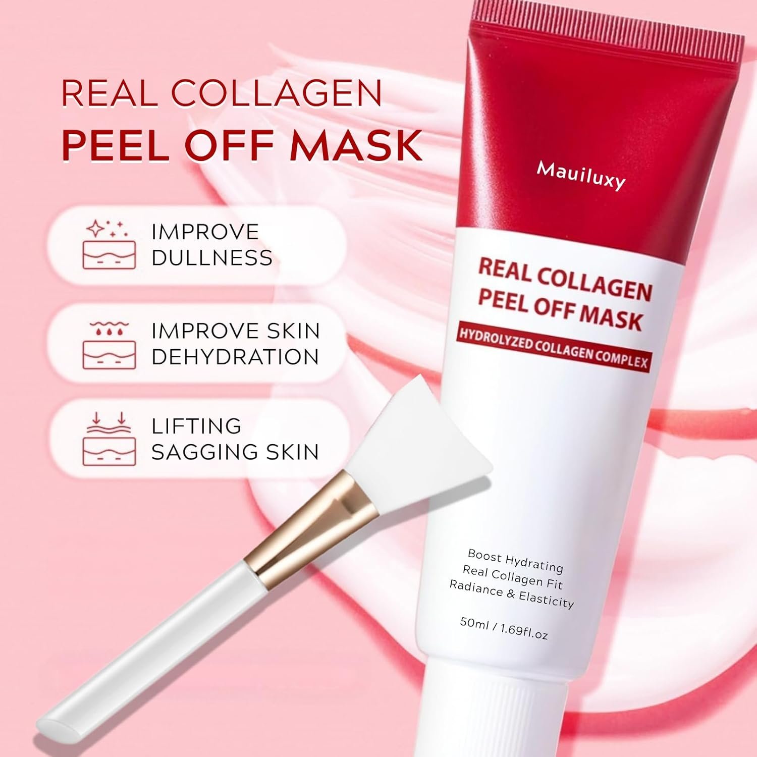 Real Collagen Fit Overnight Wrapping Peel Off Face Mask with Jelly Brush – Peel Off Mask Luxury Hydrating & Elasticity With Hydrolyzed Collagen, Plump & Glass Skin, Korean Skin Care 50ml/1.69 fl. oz