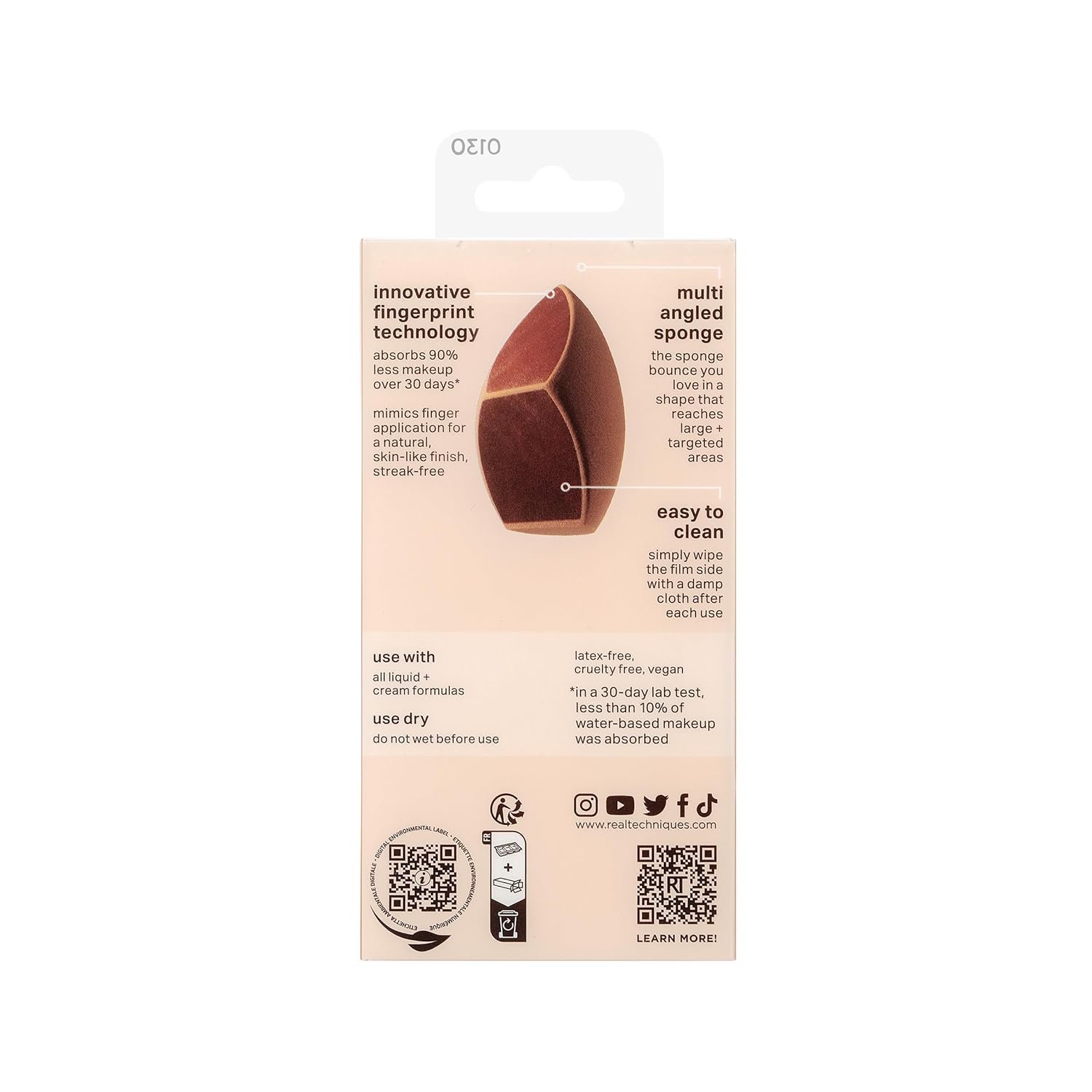 Non-irritating, latex-free material reduces makeup absorption and product waste. Also 100% Vegan & Cruelty-Free – Real Techniques products are never tested on animals