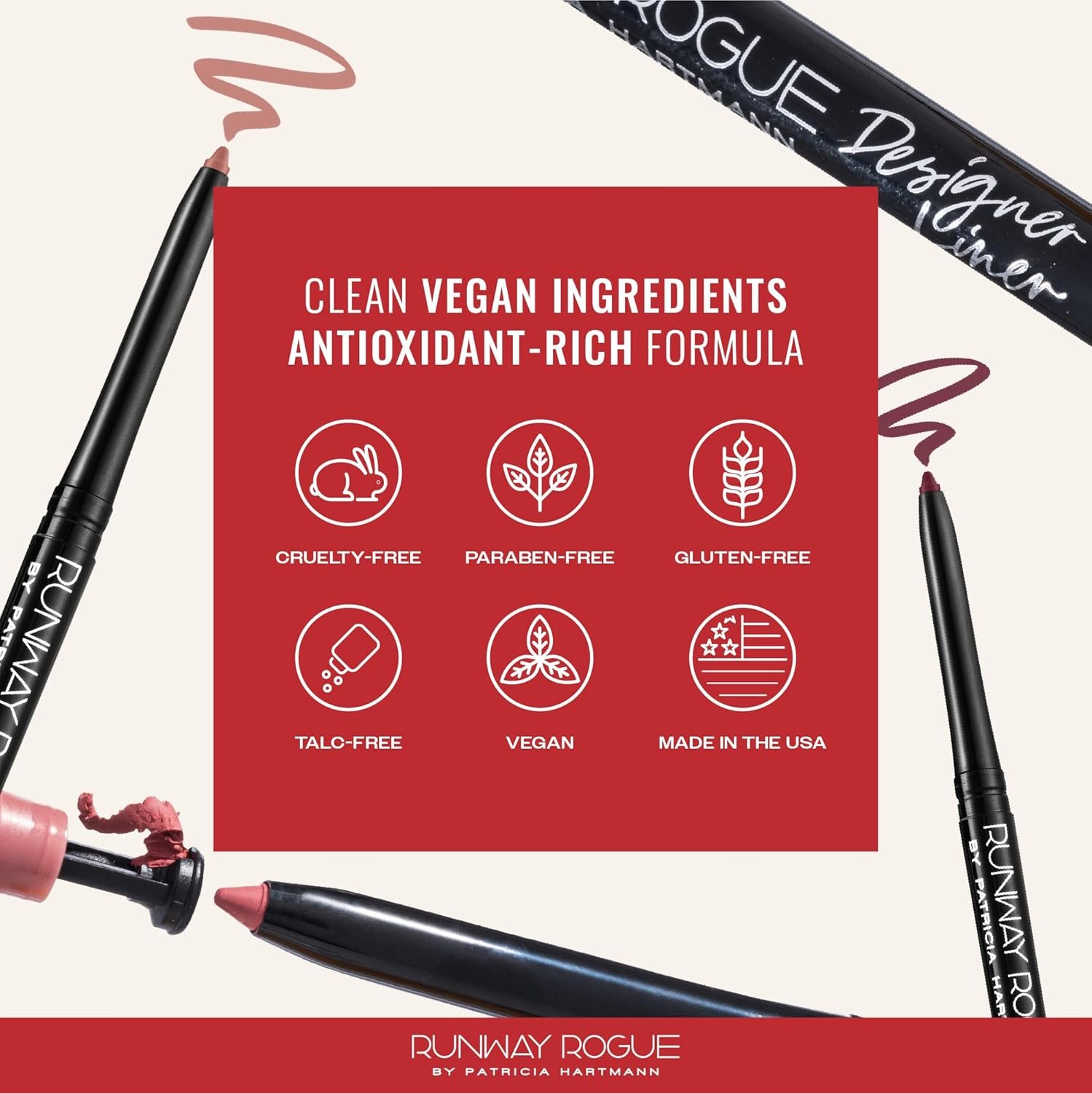 Runway Rogue Designer Liner Lip Pencil, Matte Muted Raspberry Lip Liner Pencil and Lip Liner Sharpener, ‘Open Call’