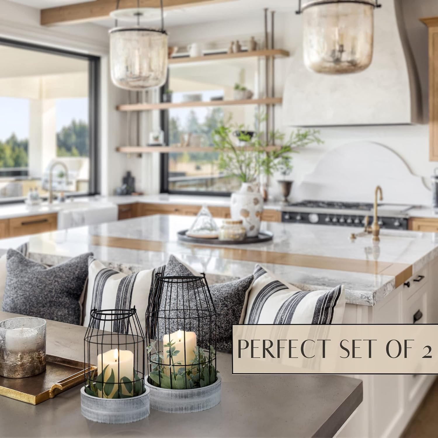 KIBAGA Farmhouse Lantern Set: Enhancing your home decor in an unique way! Freshen up your home decor with the cute lantern set by Kibaga. The rustic metal wire and white wooden stands in their modern distressed style bring home true farmhouse vibes. The lanterns come in a set of 2 – a small one and a bigger one – creating the perfect rustic decor duo for your living room, hallway, dining room & other areas around your home. The beautiful lanterns are a fantastic centerpiece for your dining table, fireplace mantle or in your hallway, but also make a special decorative highlight at a party or a wedding. It’s time to bring your decor to the next level! Your versatile home decor: You can always freshen up the lantern decor – whether you keep the lanterns without any additional decor elements or you add some other decorative items – it’s up to you! They look amazing with LED candles, fairy lights, faux ivy & lavender or other faux plants, flowers or even seasonal pieces for Christmas, Halloween and more. Please note: the lanterns are not (!) intended for use with real candles! It’s always a good time to surprise someone with a lovely gift! The lantern set makes a wonderful gift for a birthday, mother’s day, wedding or also for a housewarming party – what a great way to help someone to settle in & feel comfortable in their new home. Decorating your home like a pro with KIBAGA!
