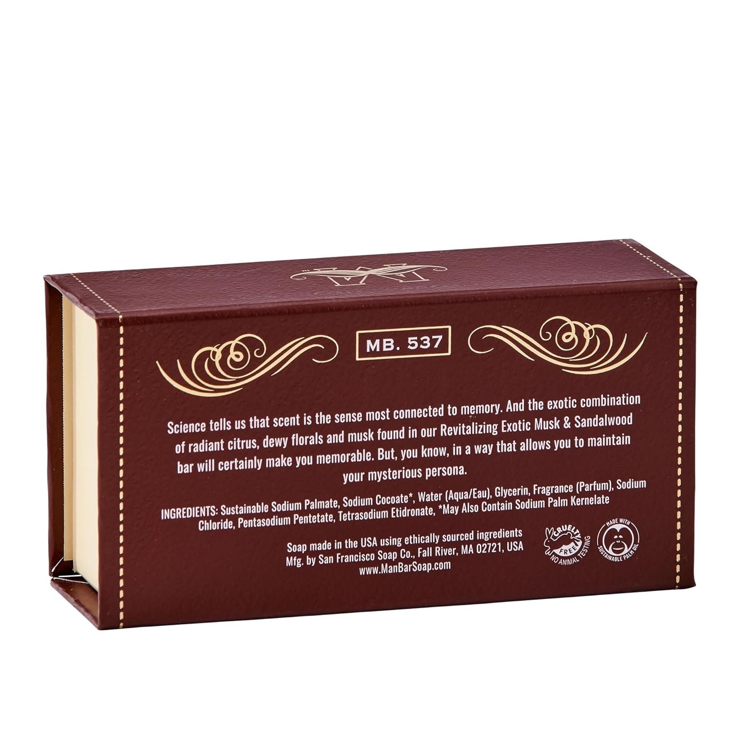 REVITALIZING – Science tells us that scent is the sense most connected to memory. And the exotic combination of radiant citrus, dewy florals and musk found in our Revitalizing Exotic Musk & Sandalwood bar will certainly make you memorable. But, you know, in a way that allows you to maintain your mysterious persona.