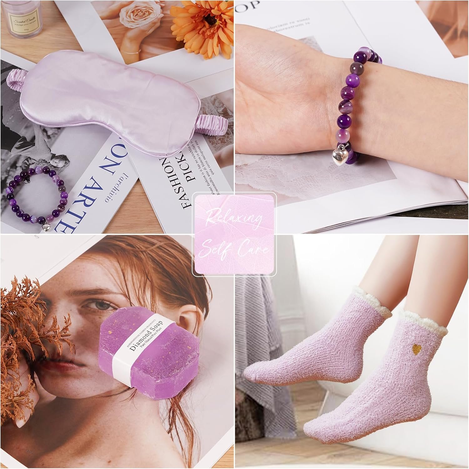 🎀SELF CARE GIFTS FOR WOMEN: This gift set contains 10 perfect gifts. They include a flannel blanket, 12-ounce egg cup set, roller gua sha massager set, handmade essential oil soap, imitation silk eye mask, plush socks, quicksand mirror, scented candles, exquisite bracelet and thoughtful greeting cards. These items are arranged in a beautifully designed gift box. Give her this ocean spa gifts. Make it a memorable moment when she opens it.