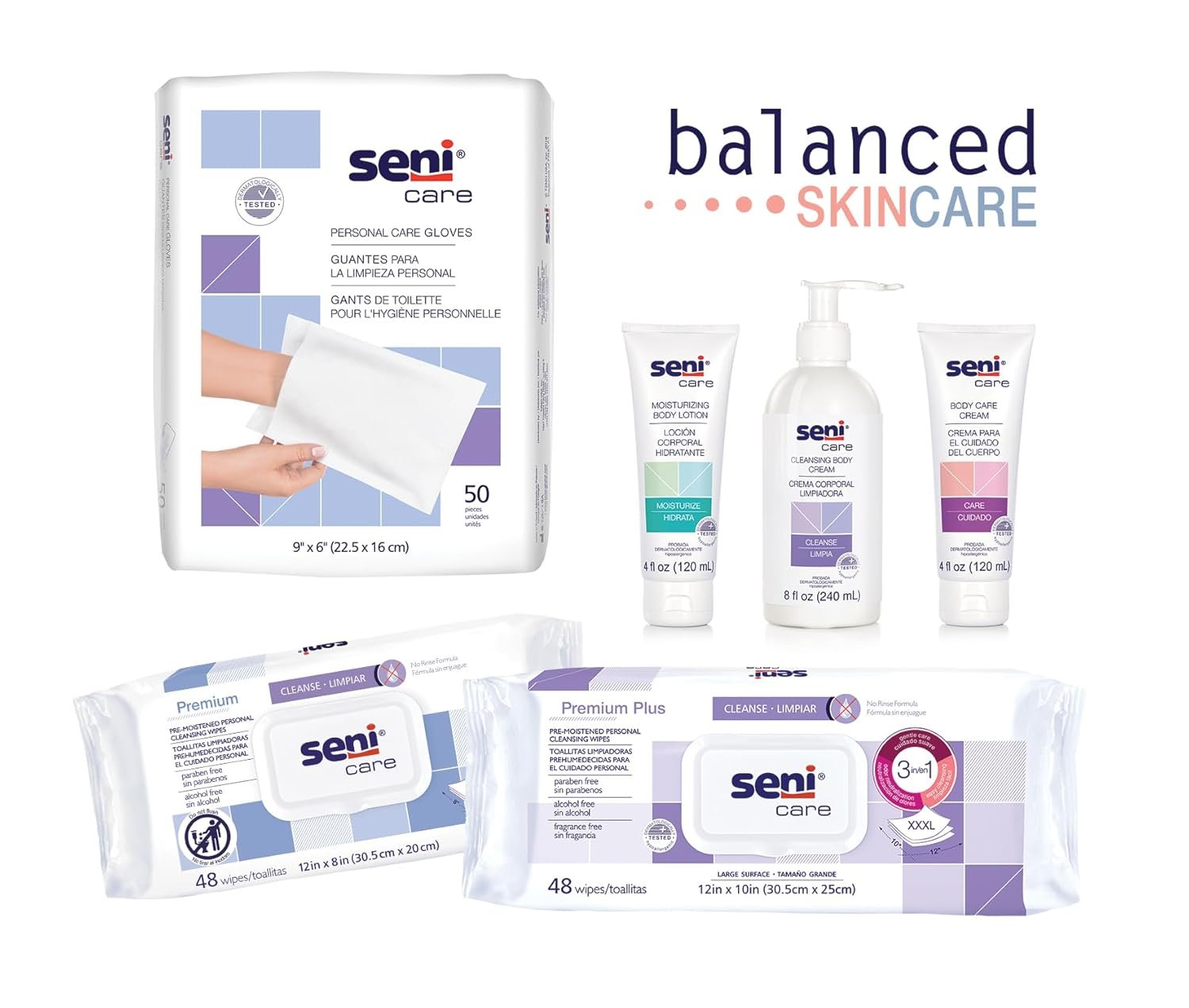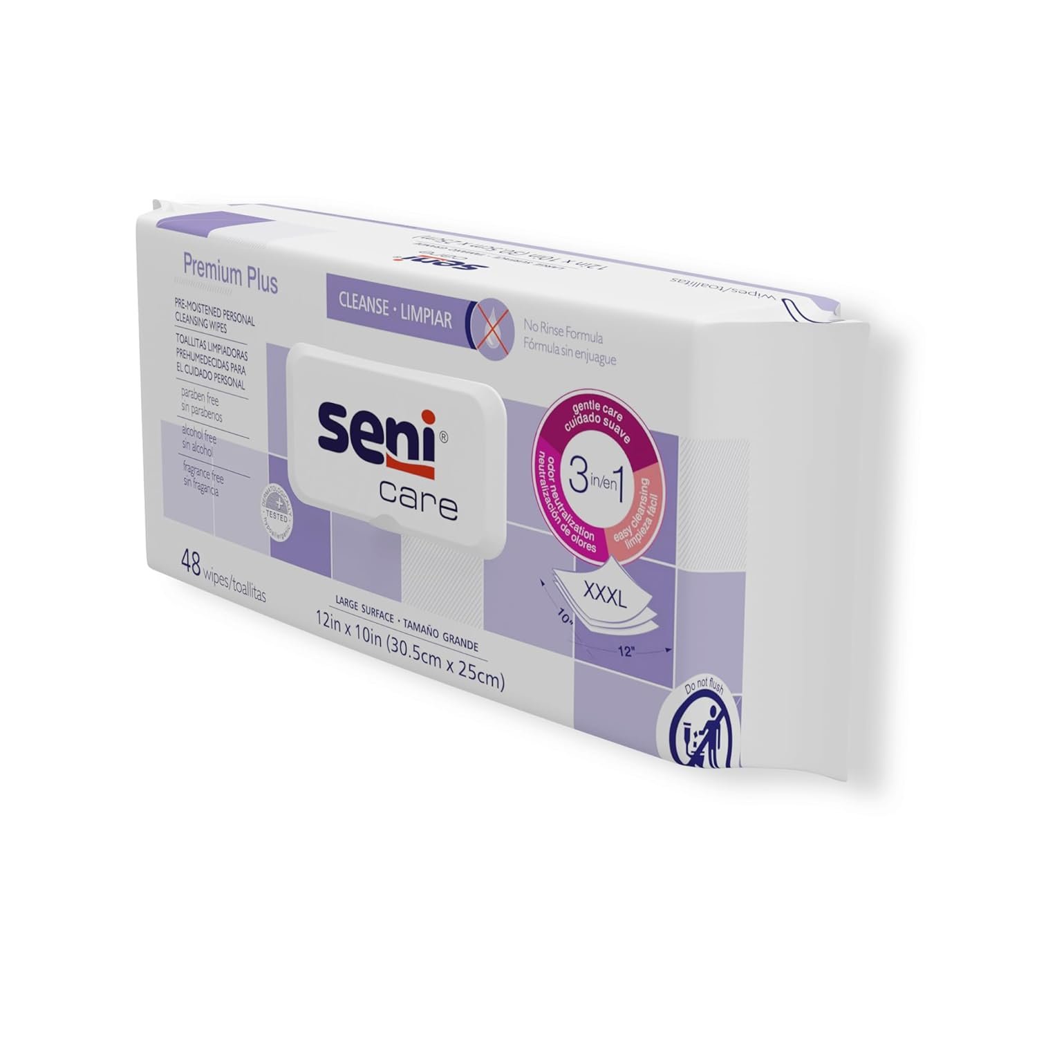 Seni Care Premium Plus Pre-Moistened Personal Cleansing Wipes are for gentle cleansing of sensitive skin. Perfect to use when soap and water are not available. Recommended for frequent cleansing of the perineal area. These disposable wipes may also be used for whole body skin cleansing.