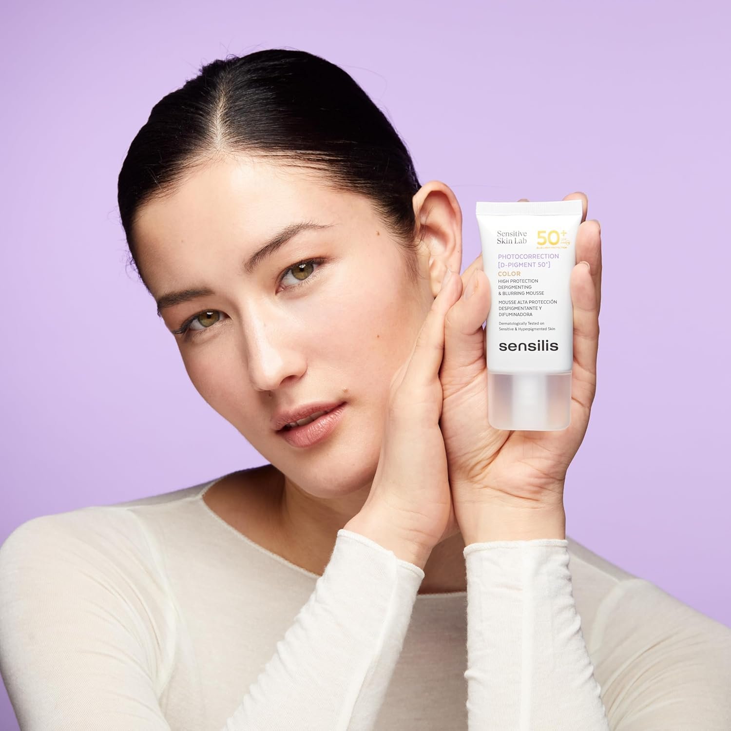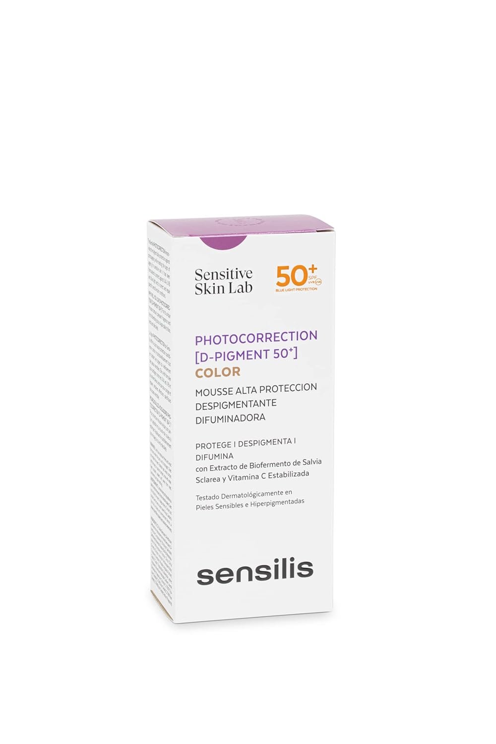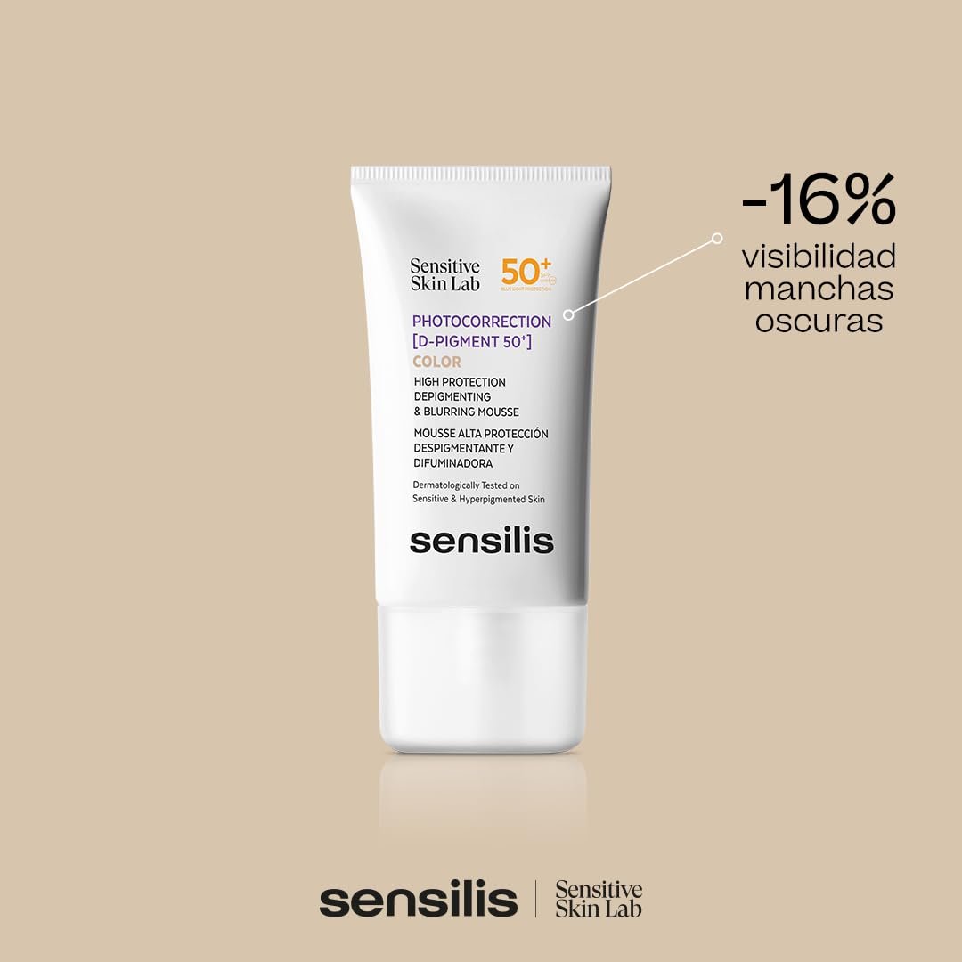Photocorrection [D-Pigment 50+] is designed for individuals of any age who have dark phototype hyperpigmented skin and are seeking enhanced photoprotection as well as an improvement in their depigmentation treatment.A tinted mousse offering exceptional protection with a rating of 50+, safeguarding against UVA, UVB, and blue light while effectively correcting and concealing spots on sensitive hyperpigmented skin, suitable for individuals of all ages. It contains filters that are non-endocrine-disrupting, non-water soluble, and non-nano.UVA, UVB and blue light protection-16% spot visibility in two monthsAntioxidant and IR action