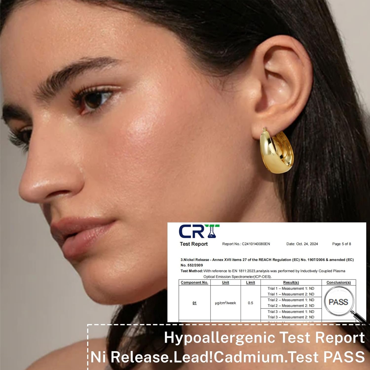 Chunky gold hoops earrings are hypoallergenic, making thick silver hoops safe for sensitive ears