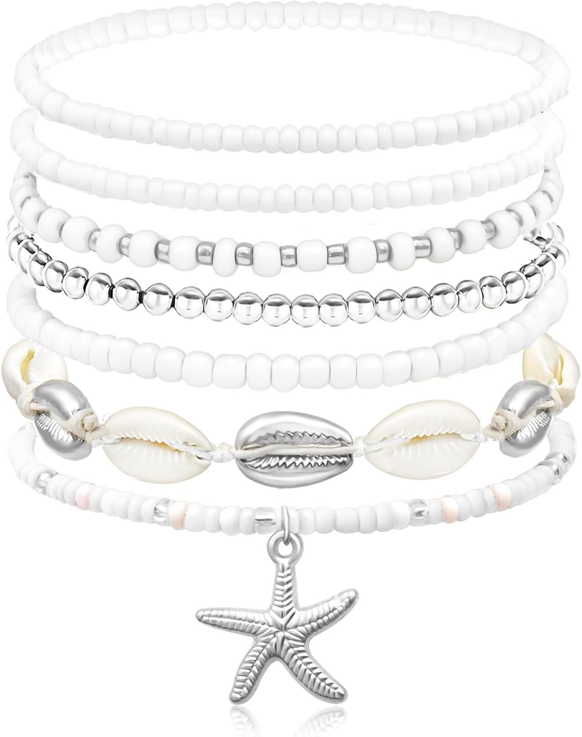Shell Summer Beach Bracelets for Women Seashell Bracelets Boho Layered Beaded Bracelets Set Starfish Bracelets Handmade Stretch Bracelets Summer Beach Jewelry Accessories Gifts