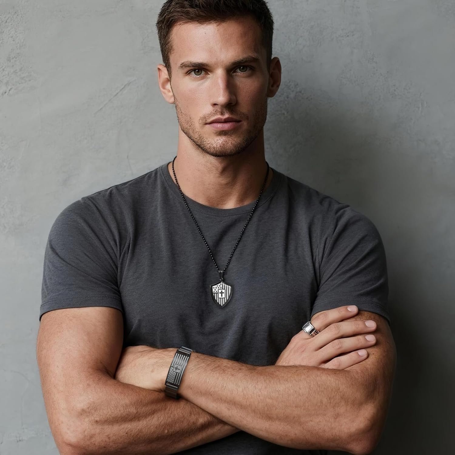 Be the first to review “Shield American Flag Cross Bible Verse Necklace for Men, Chain Pendant Faith Cross Stainless Steel Pendant Necklace”