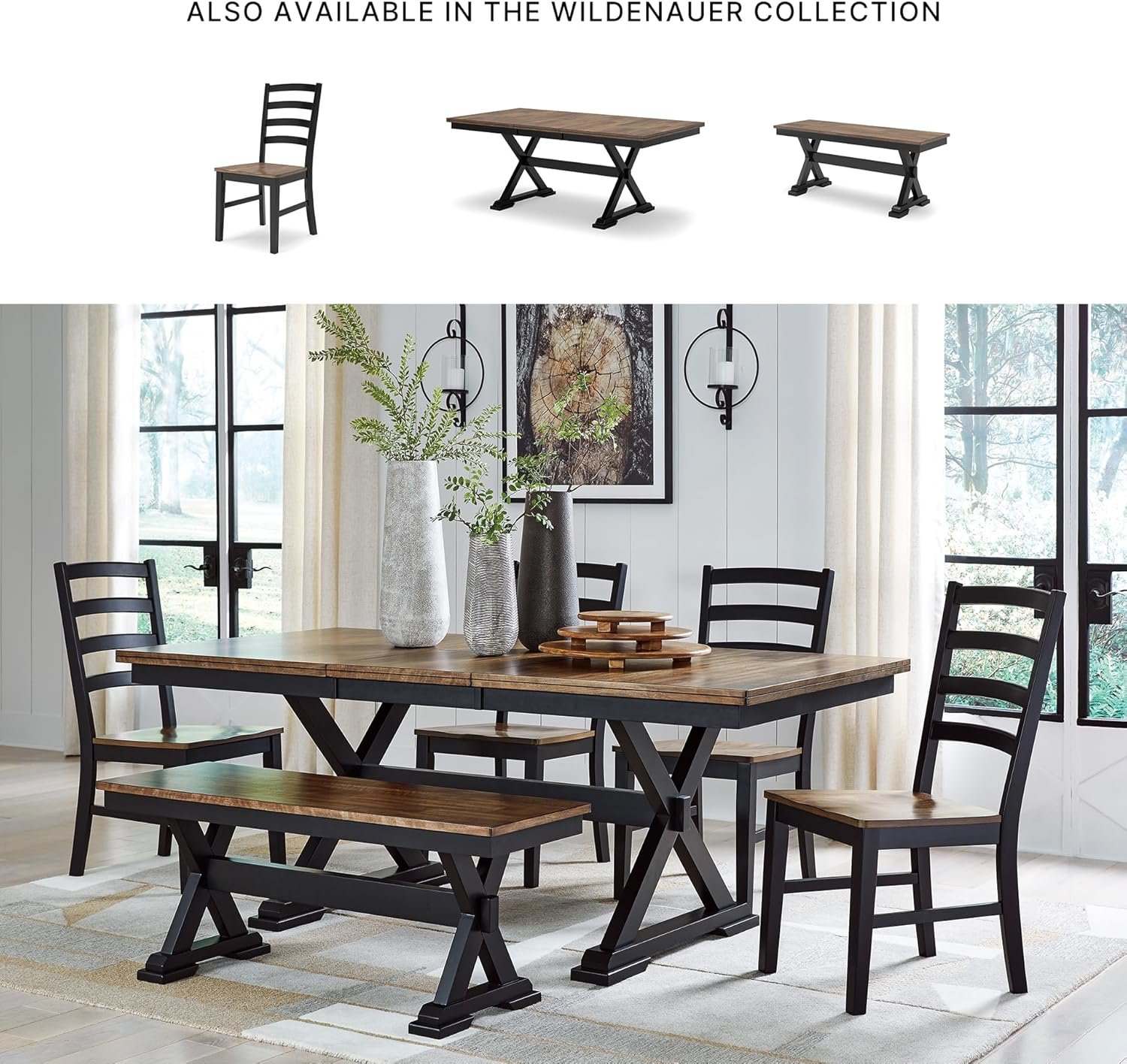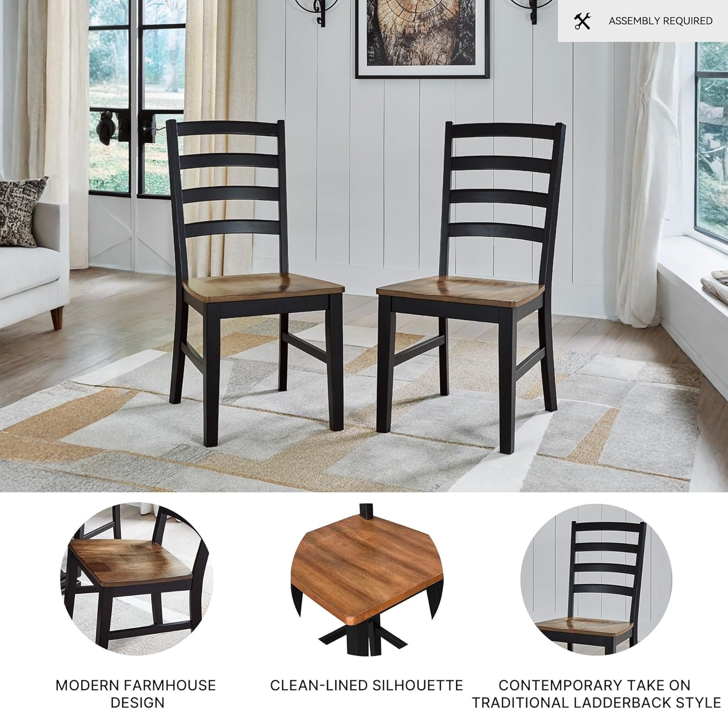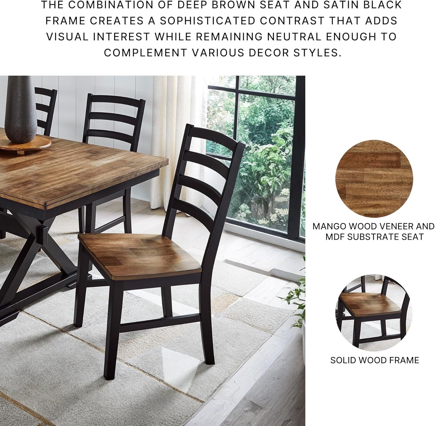 TWO-TONE LOOK: Its casual good looks are accentuated with a two-tone finish. A clean-lined silhouette with a modern ladderback adds a fresh element whether your style is vintage, country or eclectic