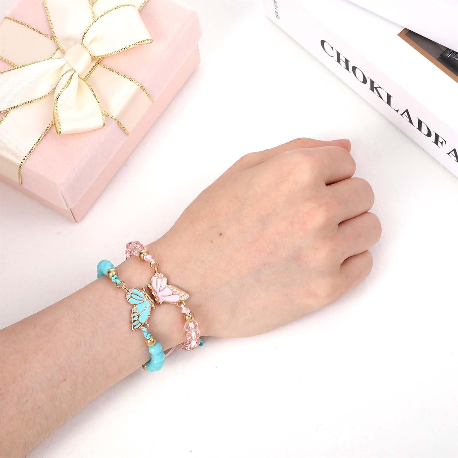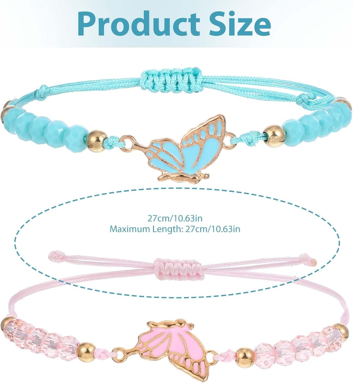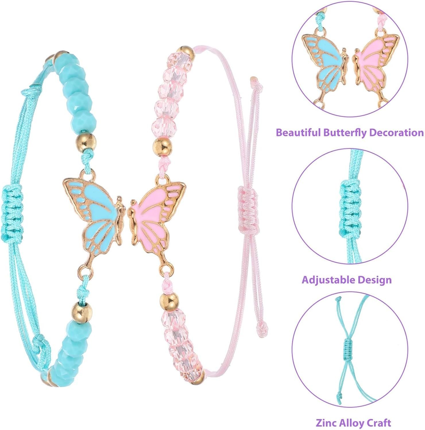 simarro 2pcs Matching Bracelets, Butterfly Friendship Bracelets Adjustable Strand Best Friends Bracelet, Handmade Charm Couples Jewelry Gifts for Women Couples Friend