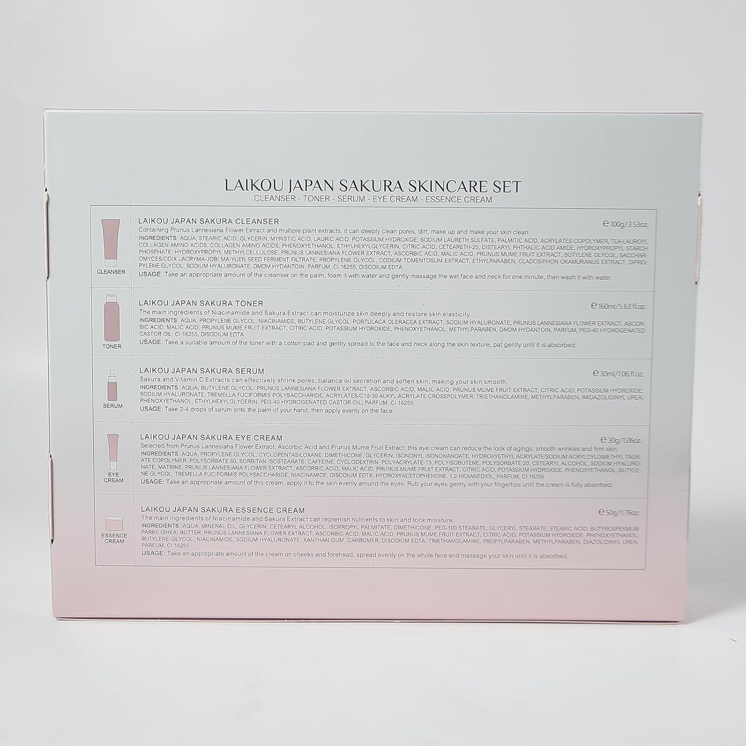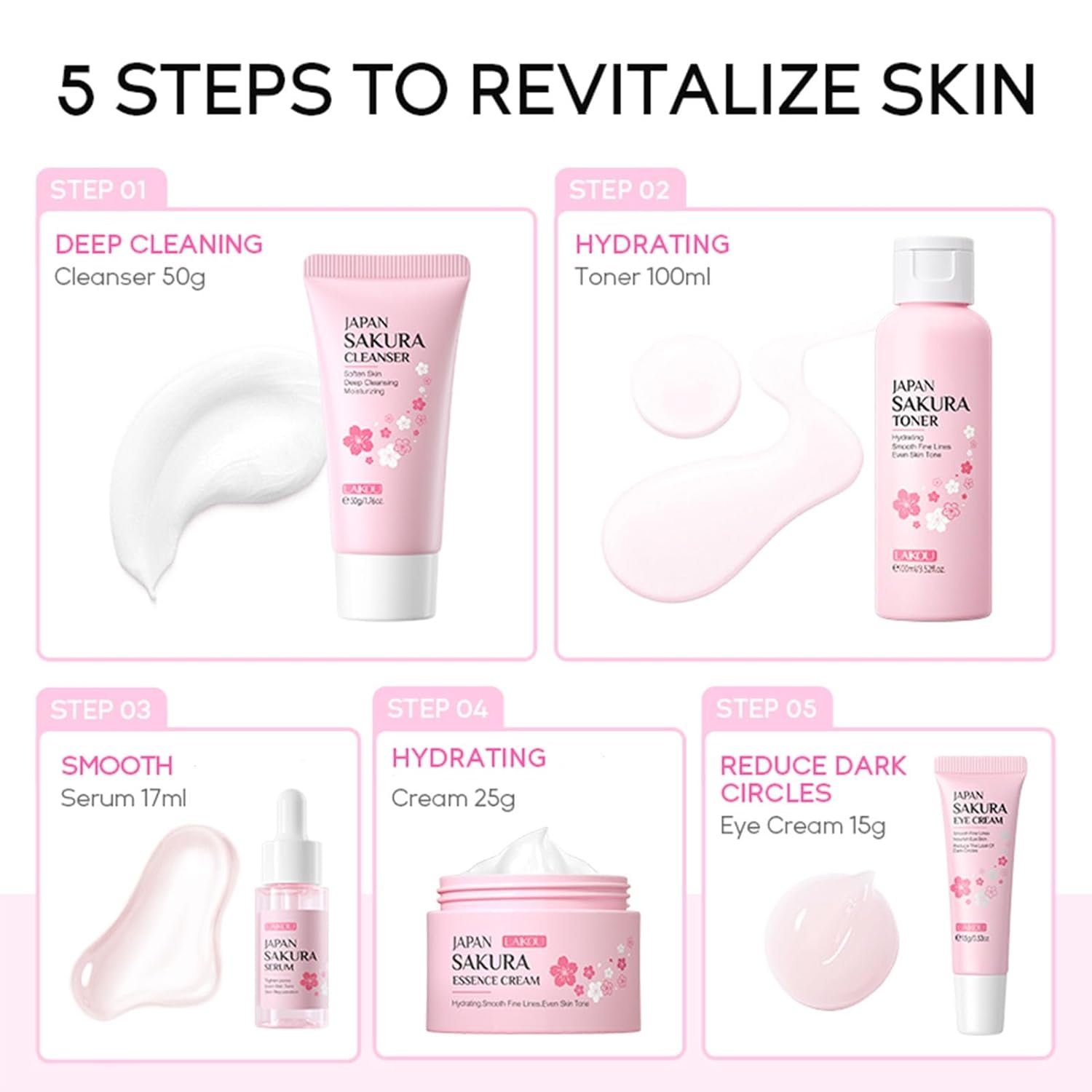 【 Enriched with Sakura Extract 】 Cherry ingredients blossoms are rich in vitamins A, B, and E, which can shrink pores, control oil, and are suitable for facial skin care. Sakura oil contains sakura enzymes, which have antioxidant effects, maintain skin elasticity and long-lasting moisturizing skincare and hydration.