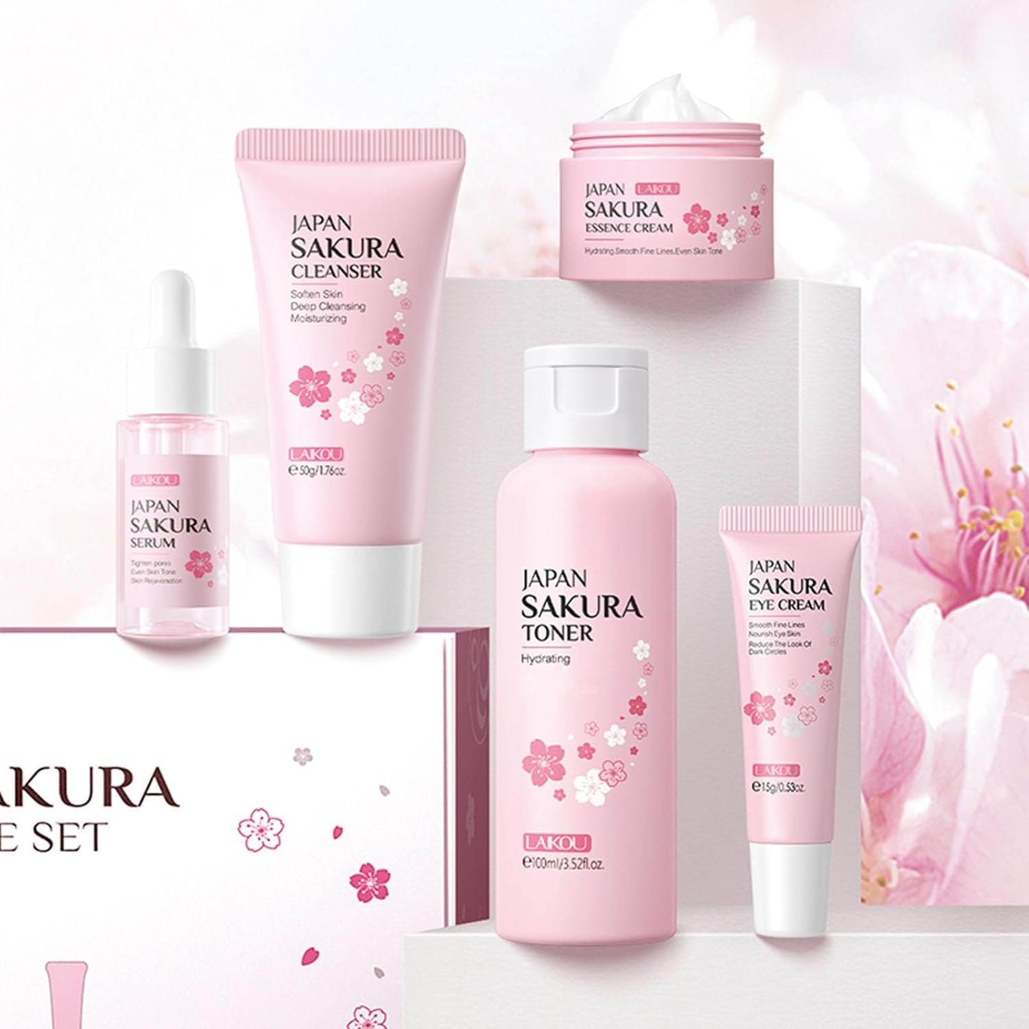 【 Moisturizing and Easy to Absorb 】 Skincare kits contain cherry blossom extract and a variety of plant extracts, which are gentle, moisturizing and vegan. Perfect for travel or daily use