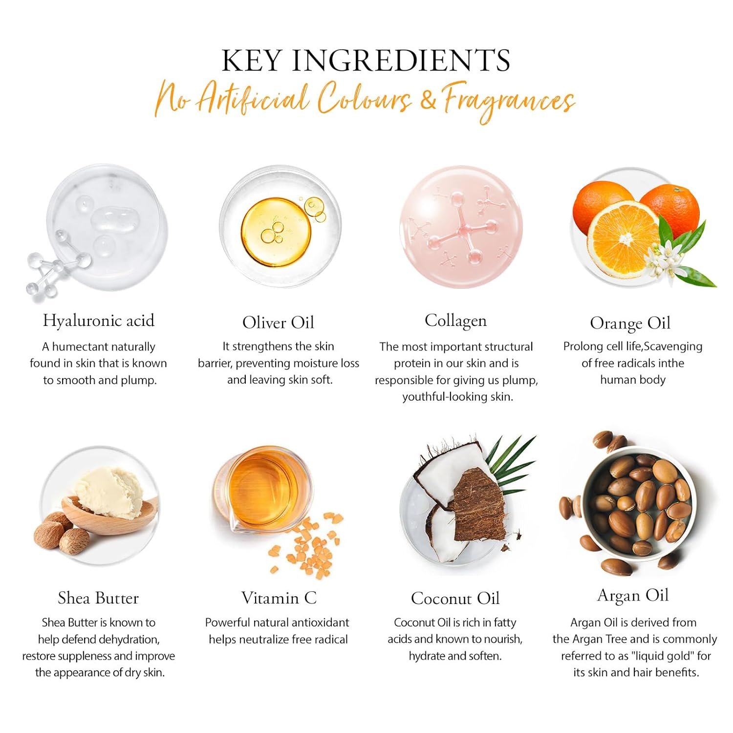 【Moisturizing Ingredients】Made only with high-quality gentle ingredients and riched in Orange vitamin c&Coconut essential oils, it can effectively cleanse and moisturize your skin