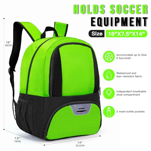 Specification: Soccer Bag&Soccer Backpack&Backpack for Football Volleyball Basketball,Sport Equipment Bags with Shoe compartment. (Green)