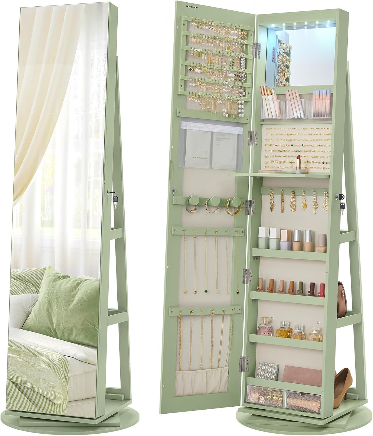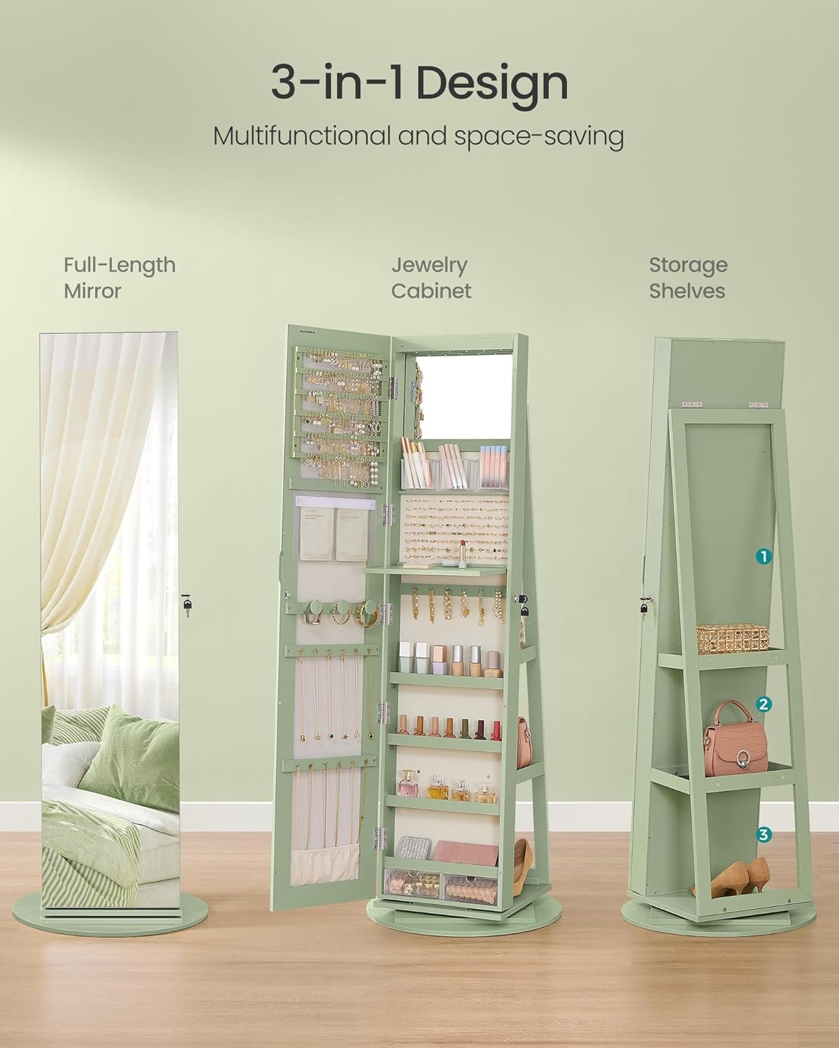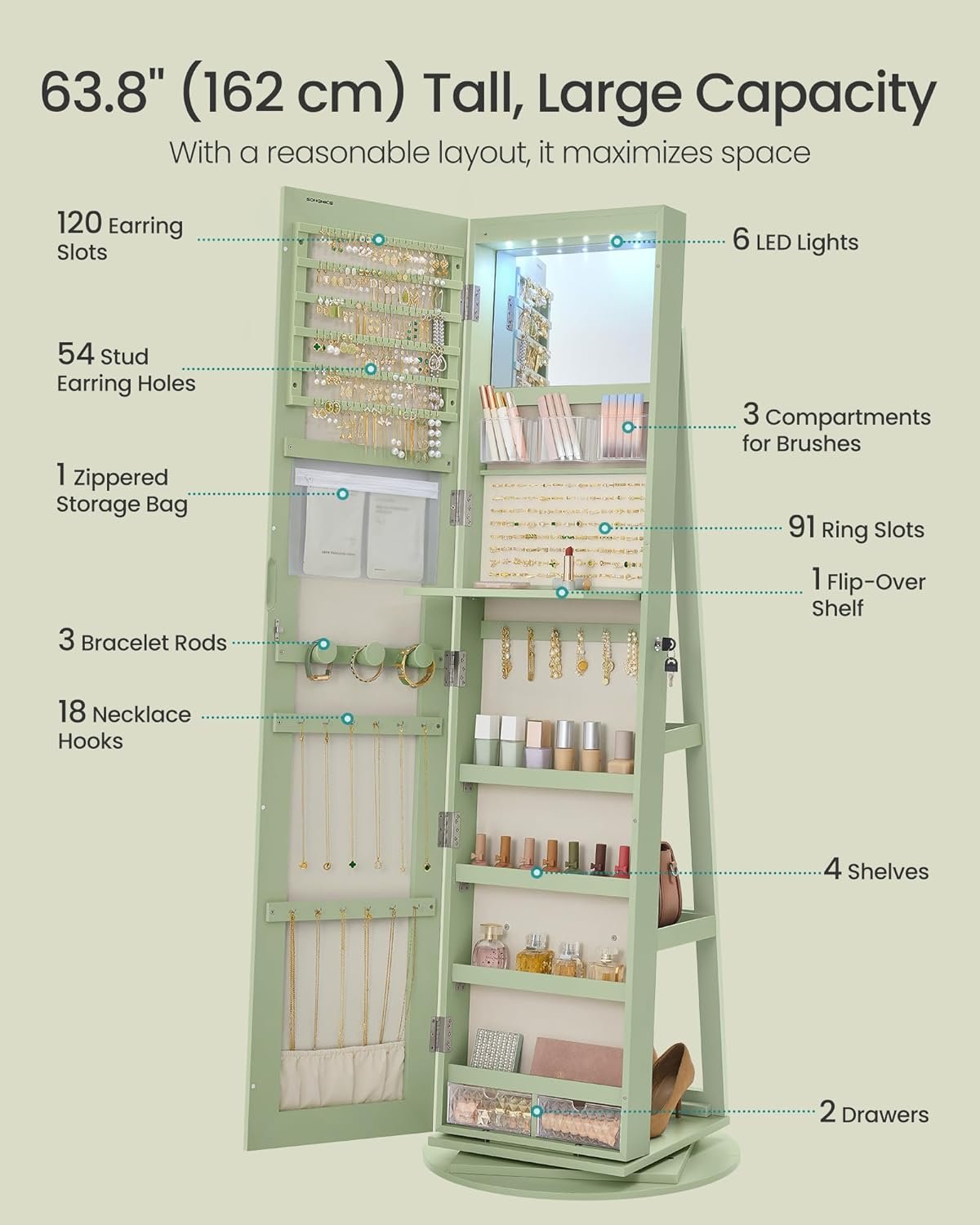 Be the first to review “SONGMICS 6 LEDs Lockable Mirror Jewelry Cabinet, 360° Swivel Jewelry Organizer Armoire Standing, Frameless Full-Length Mirror, 3 Storage Shelves, Laurel Green Surface, Cream White Lining UJJC007C01”