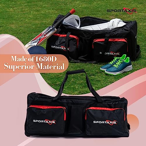 Specification: SPORTAXIS Cricket Wheelie Kit Bag – Wheeled Duffel, Multiple Compartments, Black & Red – Lightweight, Durable, and Easy to Carry Cricket Kit Bag