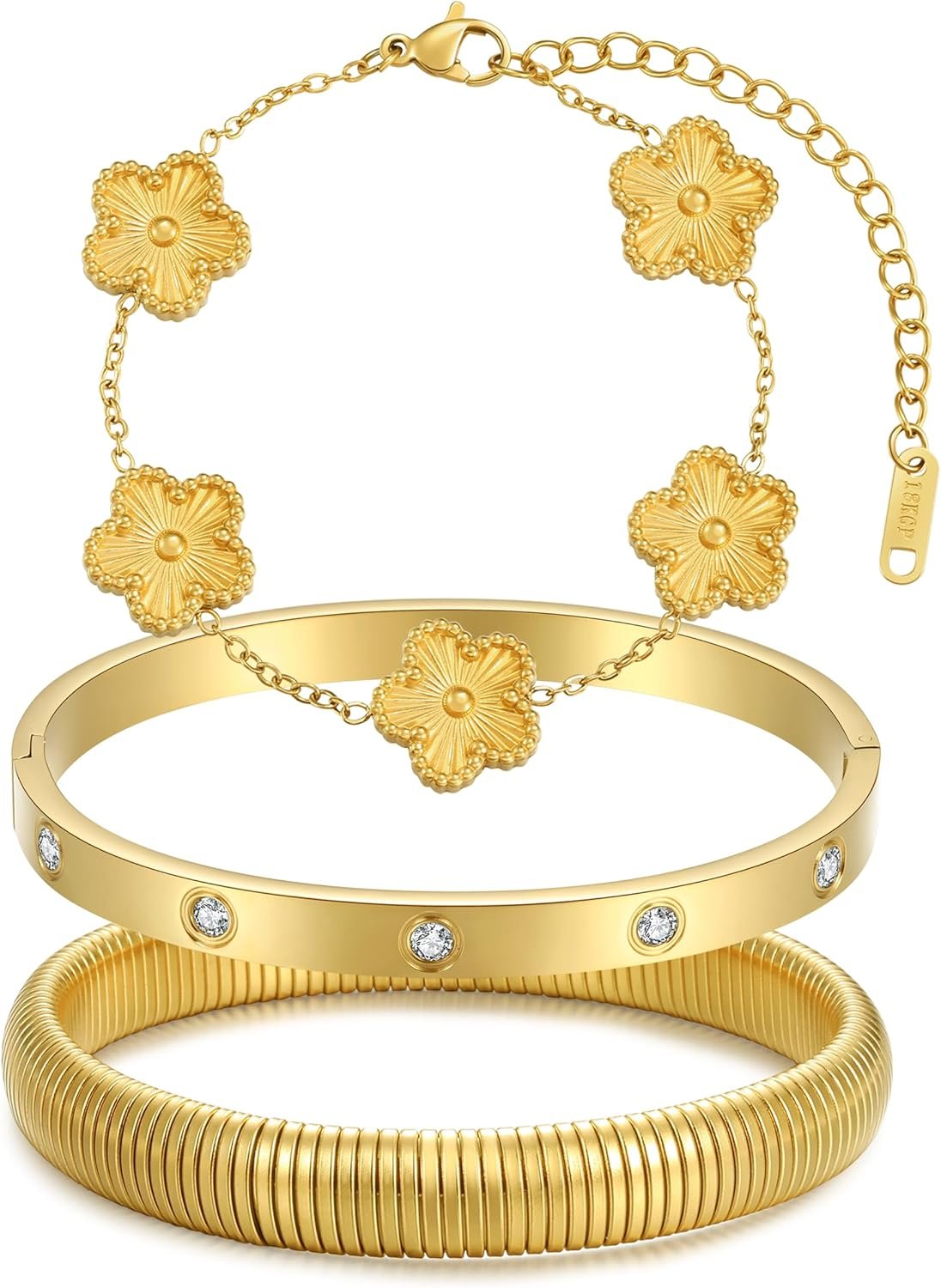 Be the first to review “Stackable Four Leaf Clover Bracelets for Women, 18K Gold Plated Love Bangle Bracelets Set, 3 Pcs Chunky Jewelry Gifts”
