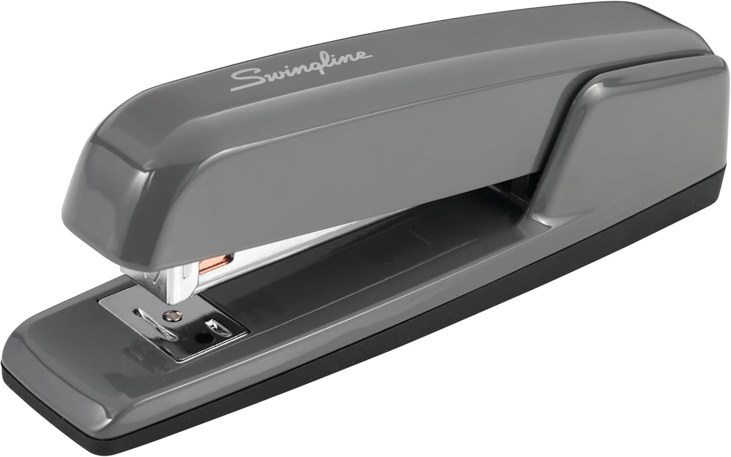 The renowned Swingline 747 Stapler is built with all-metal construction for dependability and strength. This sleek, steel gray stapler adds style to any desktop. A specialized inner rail delivers reliable, jam-resistant stapling. Stapler holds a strip of up to 210 staples. A handy low-staple indicator alerts you when it’s time for a refill. This stapler secures up to 30 sheets of paper and works best with standard sized Swingline S.F. 4 Premium Staples. While generally designed for desktop use, the 747 stapler is also great for tacking and pinning. It’s easy to tack papers onto a bulletin board, telephone pole, or other vertical surface—simply open the stapler 180 degrees by pressing a release at the bottom, and you’re ready to tack. This stapler also easily produces pointed staples for temporary pinning. Reverse the anvil by pushing and rotating the adjustable knob at the bottom and press. Swingline backs this stapler with a 100% performance guarantee and a limited lifetime warranty.