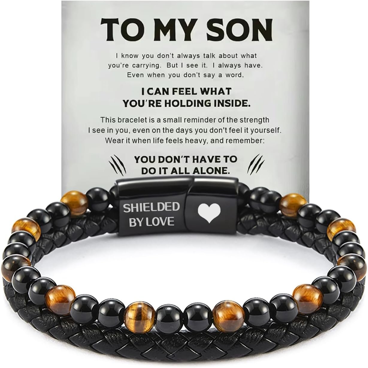 Be the first to review “The Guardian – Son’s Tiger Eye Protection Bracelet for Men, Personalized Leather Black Beaded Bracelet, Handmade Cuff Inspirational Bracelets Men’s Birthday Weave Gift Jewelry”