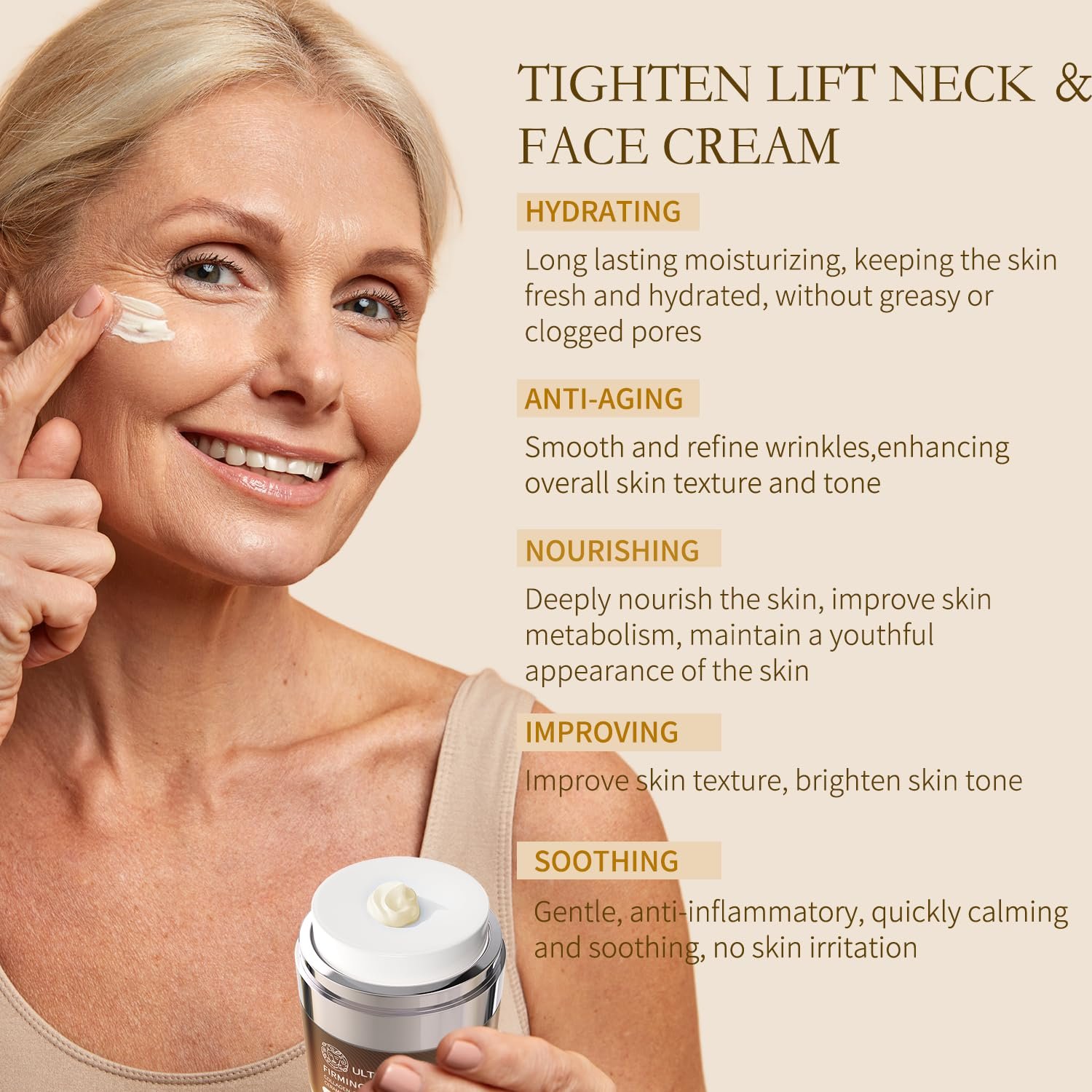 Tighten and Lift Neck Cream, Deep Hydration Neck Firming Cream with Retinol, Collagen & Honey Anti-Aging & Wrinkle Moisturizer for Face, Neck & Décolleté Women & Men 1.7 Fl Oz