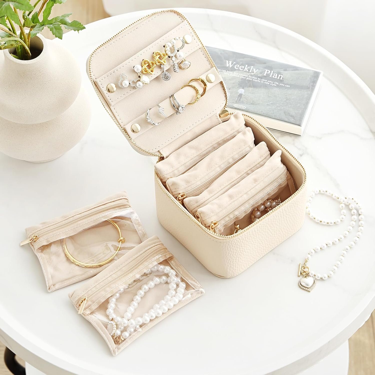 【Ideal for Travel & Gifting】 Compact size fits in carry-on bags. Great as wedding favors, birthday gifts, or kids jewelry box. Includes detachable jewelry pouch.