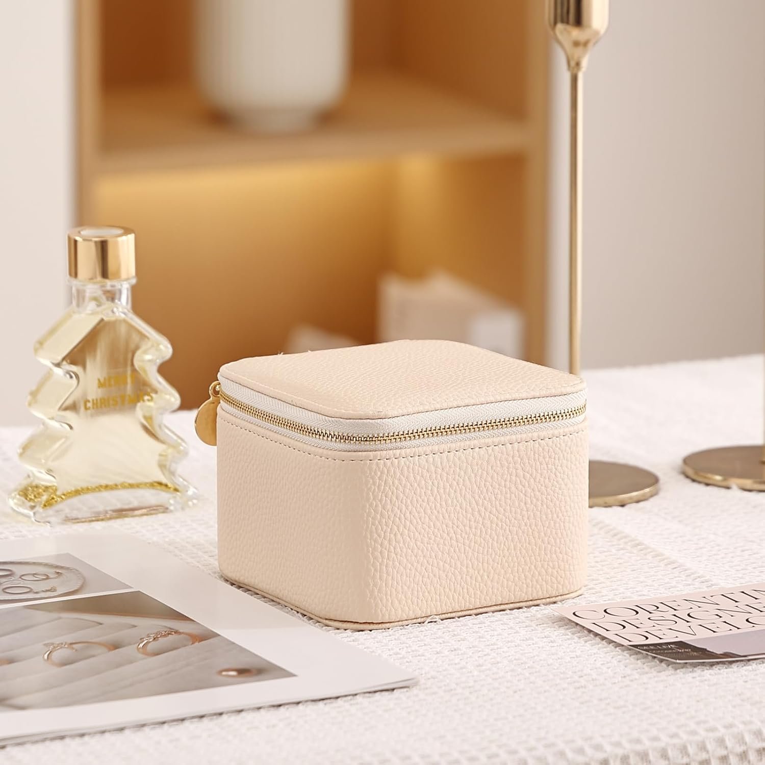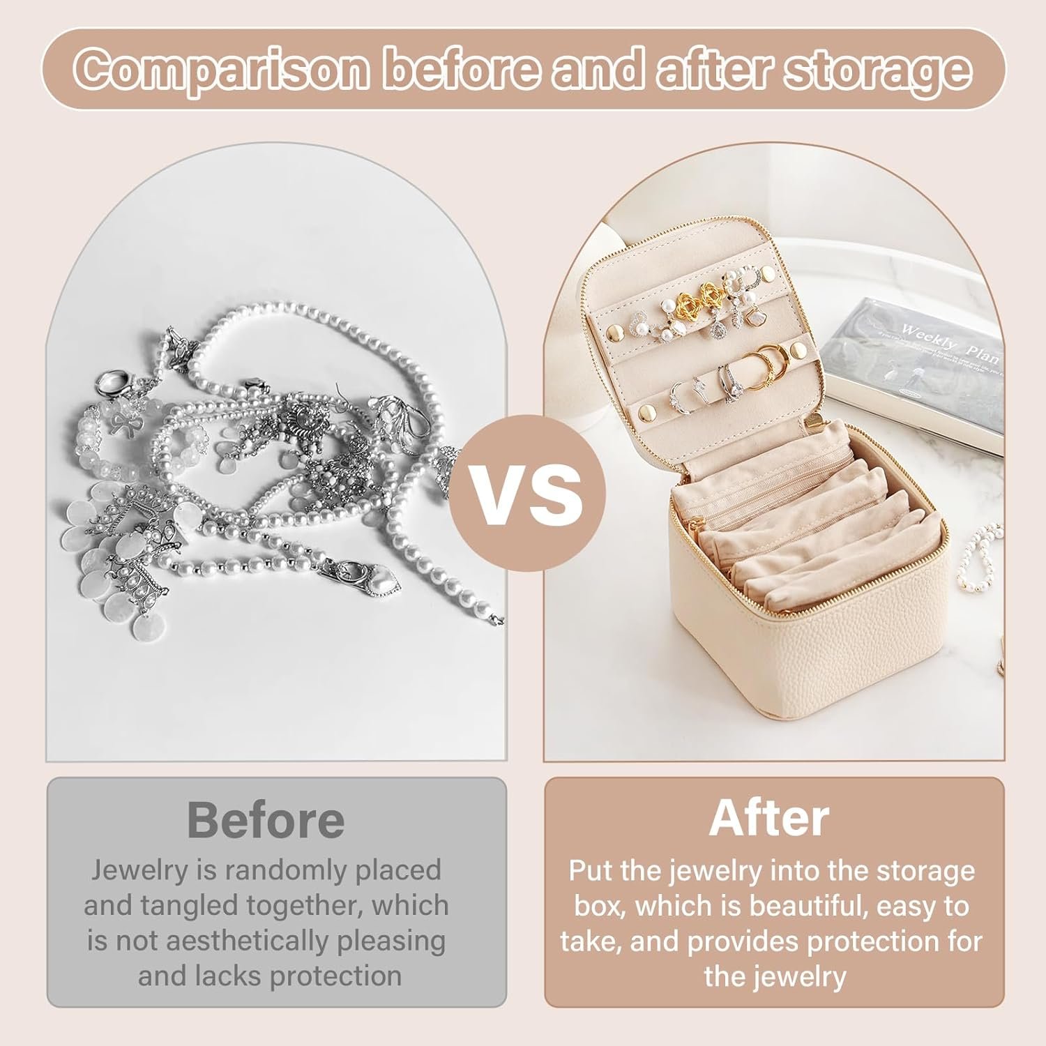 【Multi-Functional Jewelry Storage】 Stores rings, watches, necklaces. Dust-proof mini jewelry travel case keeps items organized.