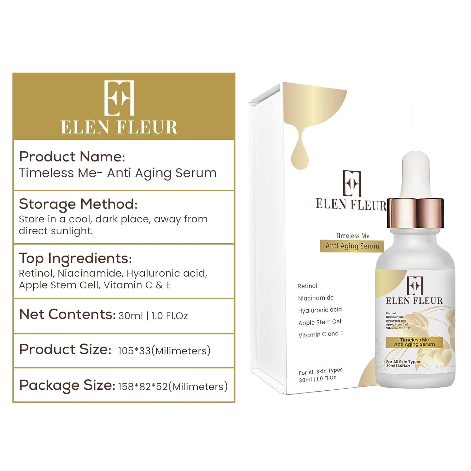 Be the first to review “Timeless Me Anti Aging Serum, Retinol, Hyaluronic Acid, Niacinamide, Vitamin C & E, Apple Stem Cells, Hydrating Face Serum for Fine Lines and Uneven Tone, 1.0 FL Oz (30ml)”
