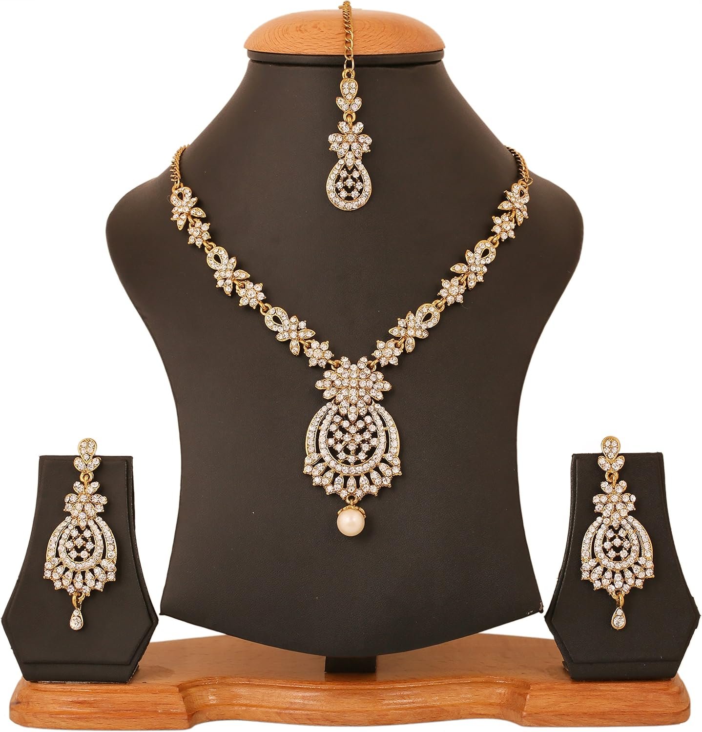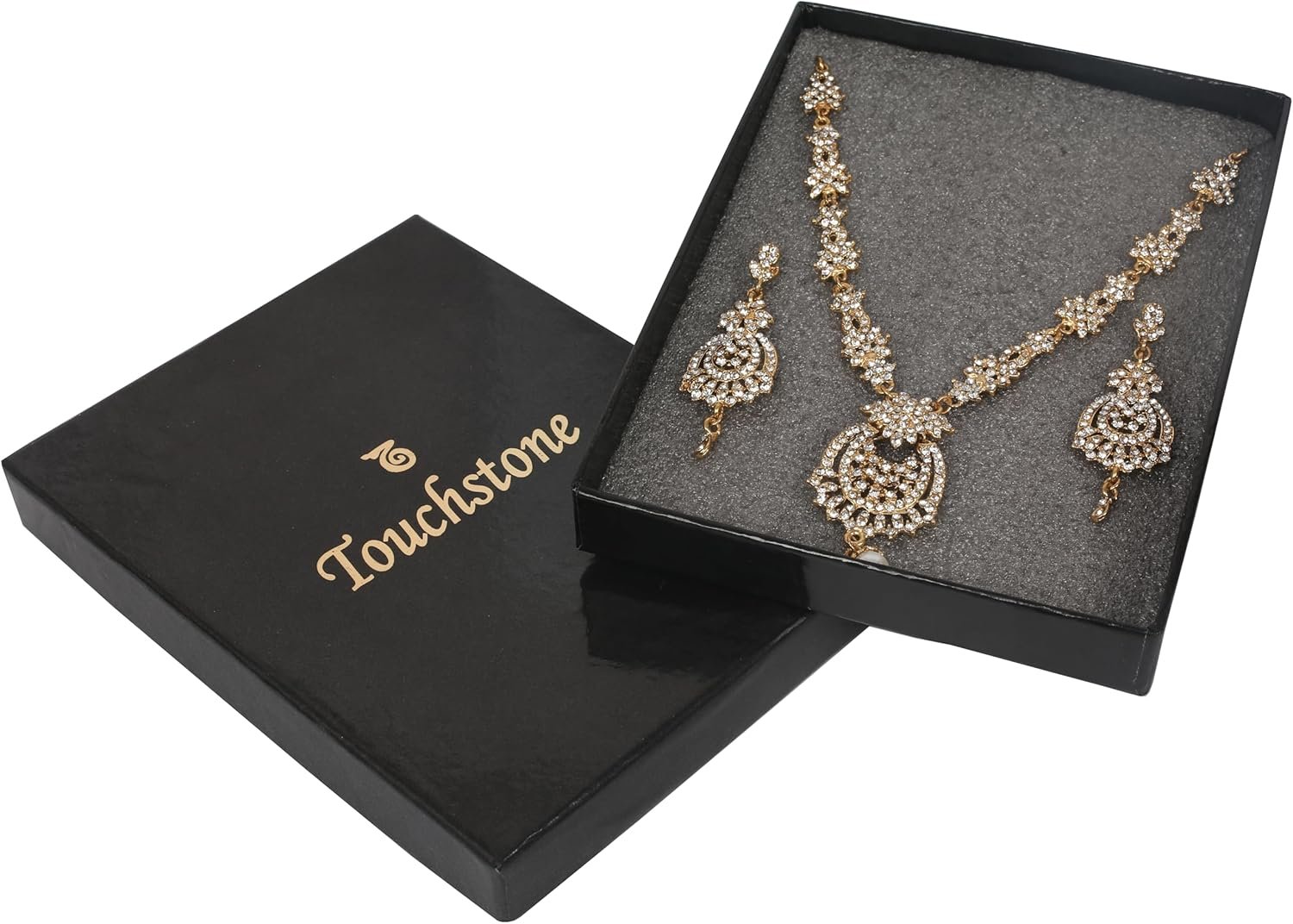 Be the first to review “Touchstone Indian Bollywood Gorgeous intricate Workmanship Sparkling Rhinestone crystal wedding Designer Jewelry Necklace Set In Gold or Silver Tone For Women.”