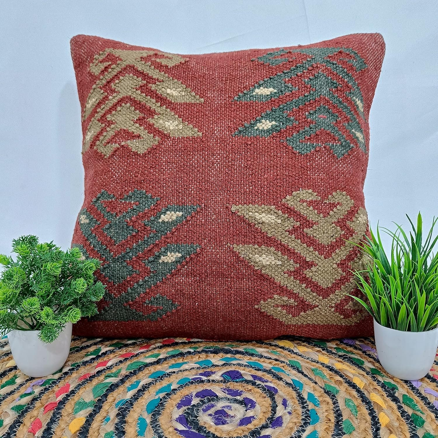 PRODUCT TYPE: KILIM(70% Jute + 30% Wool) Outdoor Cushion Cover (Without Inserts) for Home Decor