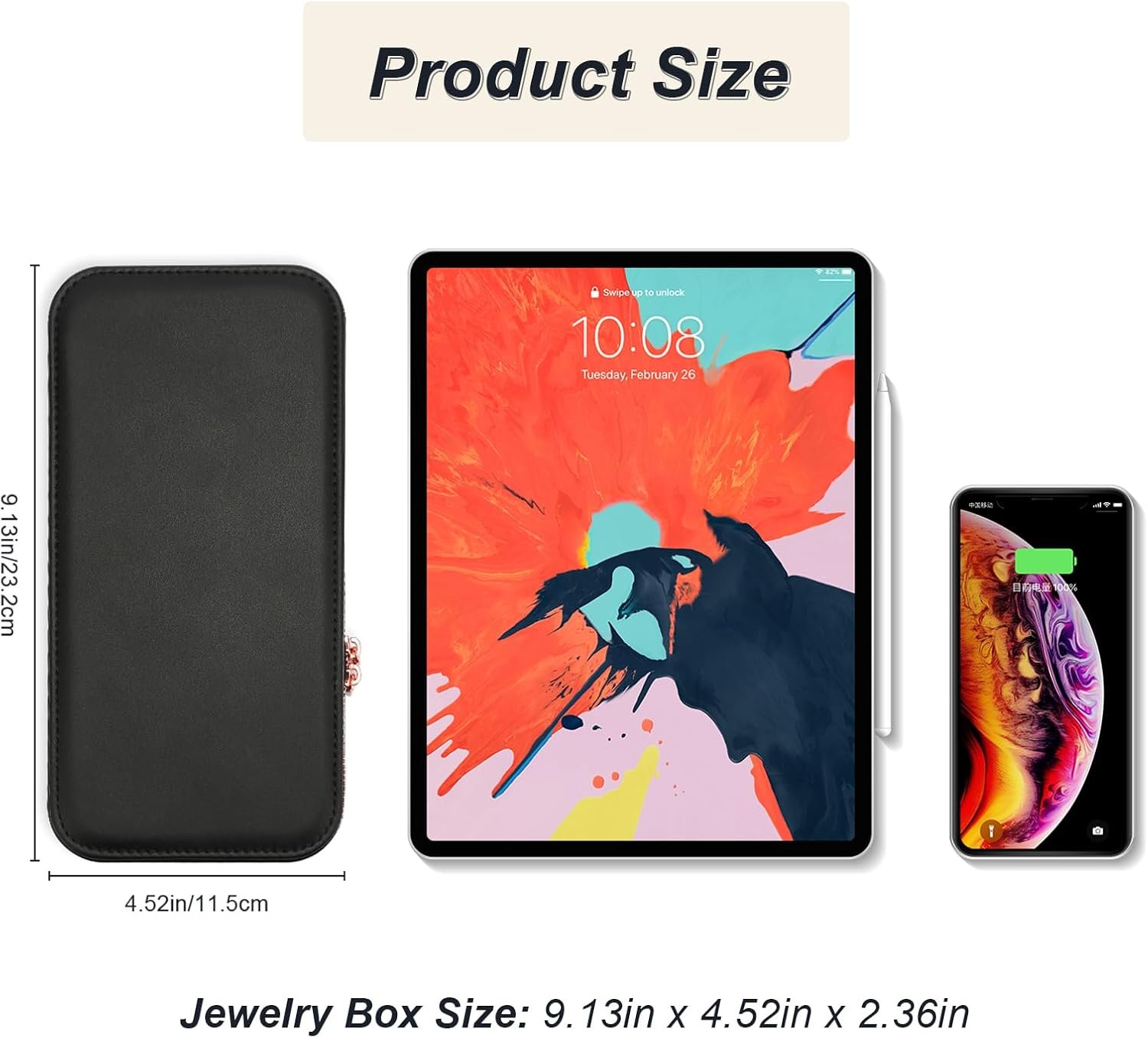 Zippered Portability for Effortless Travel – Crafted for unparalleled convenience, this lightweight jewelry box measures a compact 9.2″ x 4.53″ x 2.25″, fitting seamlessly into your bag or suitcase. Ideal for weekend getaways, business trips, or extended vacations, it lets you carry your cherished accessories wherever you go.