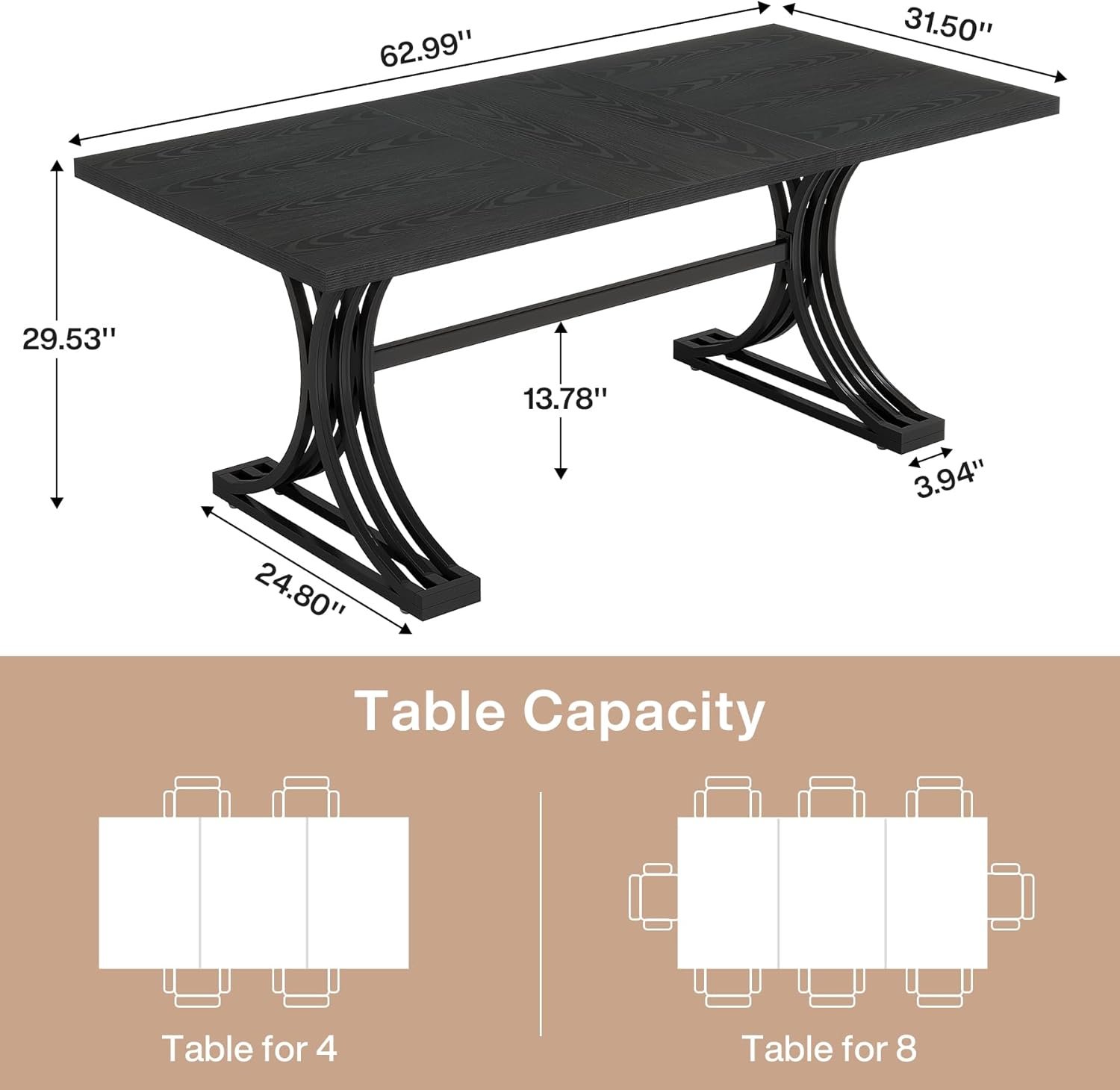 Spacious Delight: With dimensions of 31.50″ D x 62.99″ W, our large dining table offers ample space for your family and friends to gather and enjoy their meals, accommodating multiple dishes and ensuring everyone feels welcomed and included.