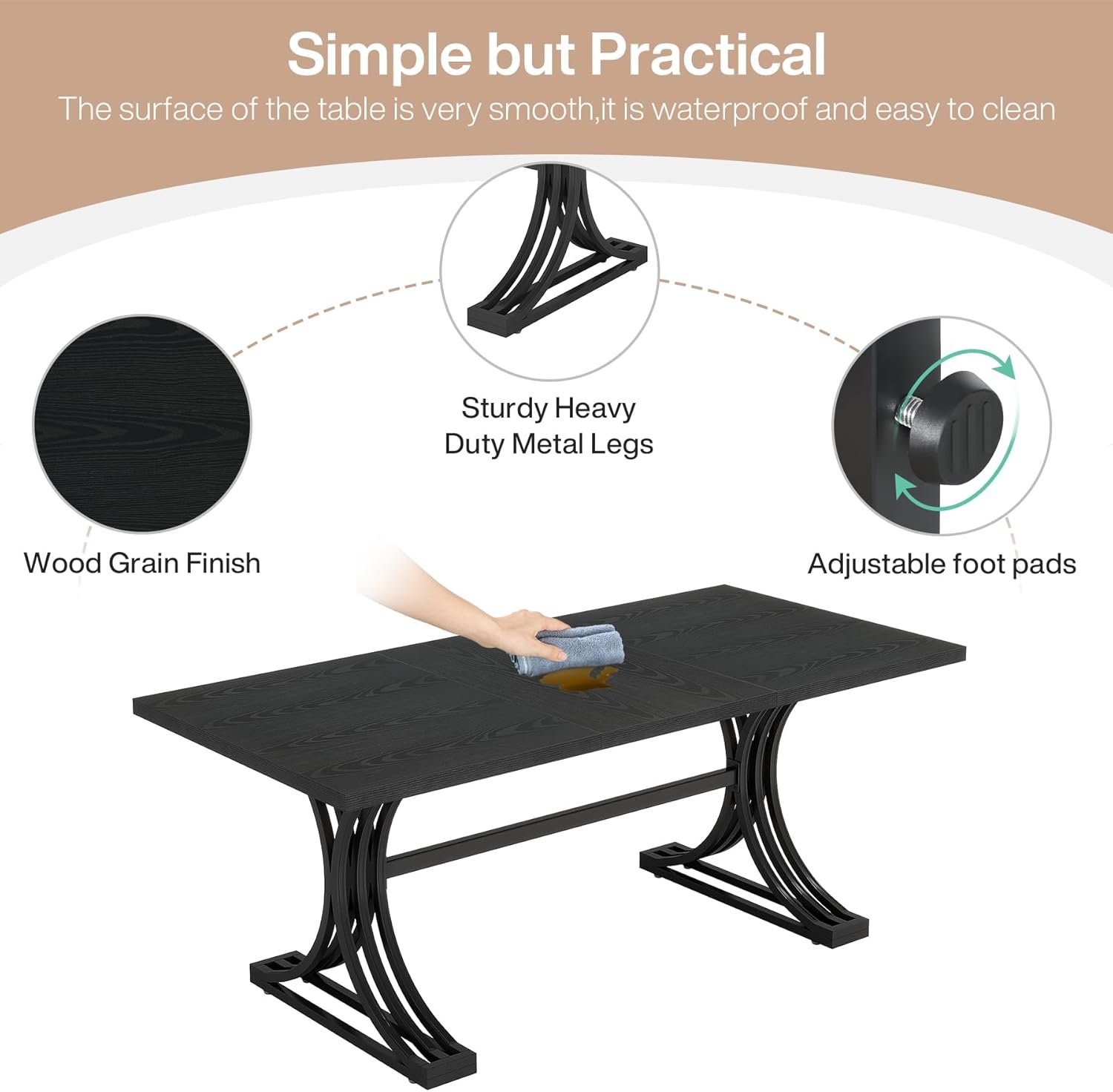 Uncompromising Durability: With a 1.18″ table top, our rectangular dining table offers exceptional durability, providing a reliable surface that can withstand the demands of daily use, ensuring it remains a cherished piece in your home for years to come.