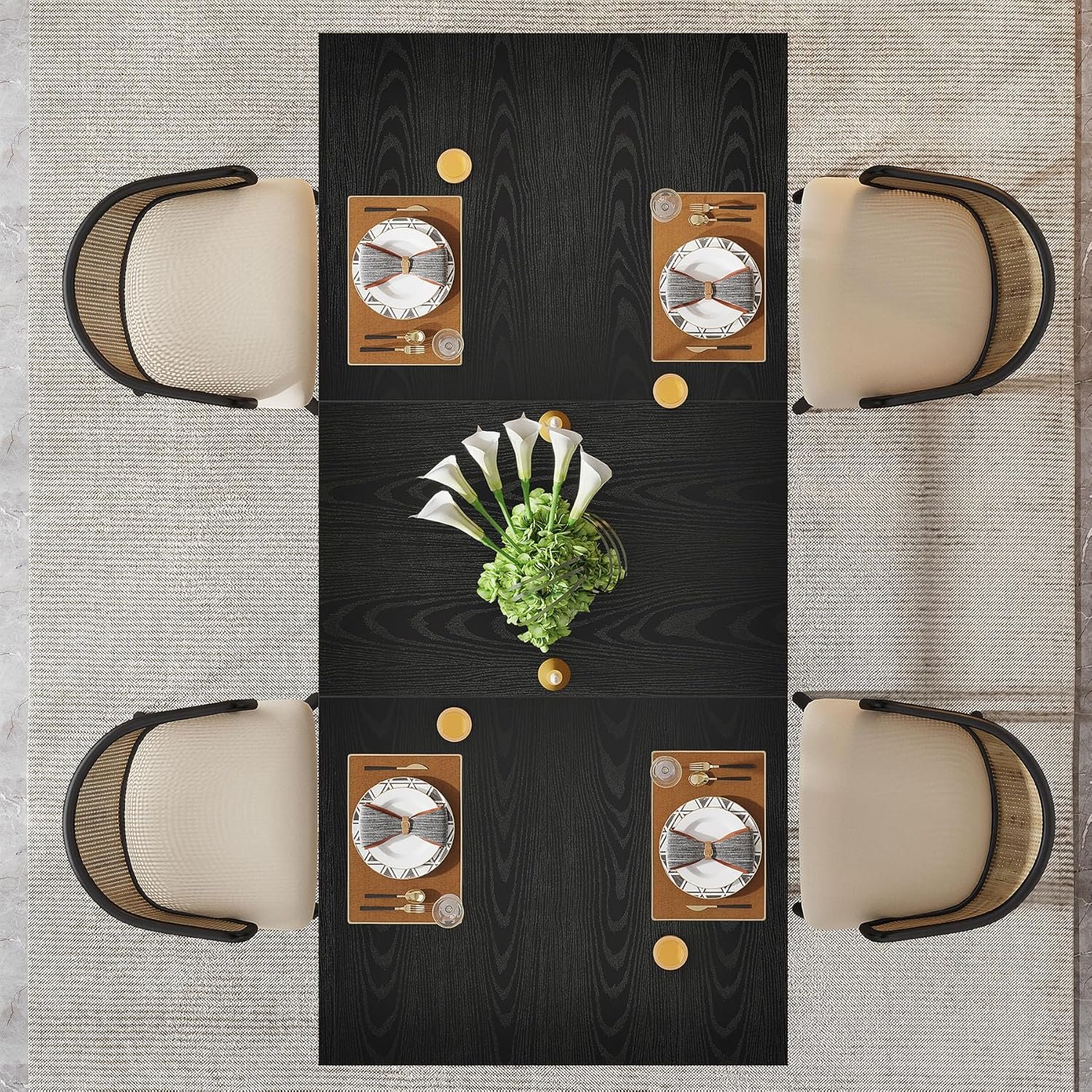 Luxurious Faux Marble Veneer: The tabletop featuring a faux marble veneer brings a touch of elegance to your dining space, exuding sophistication and enhancing the overall ambiance, making every meal a memorable experience.