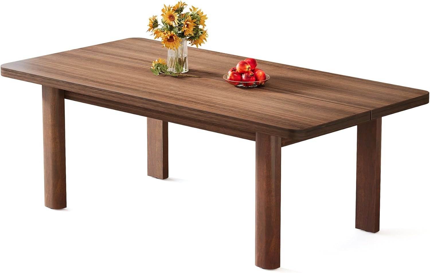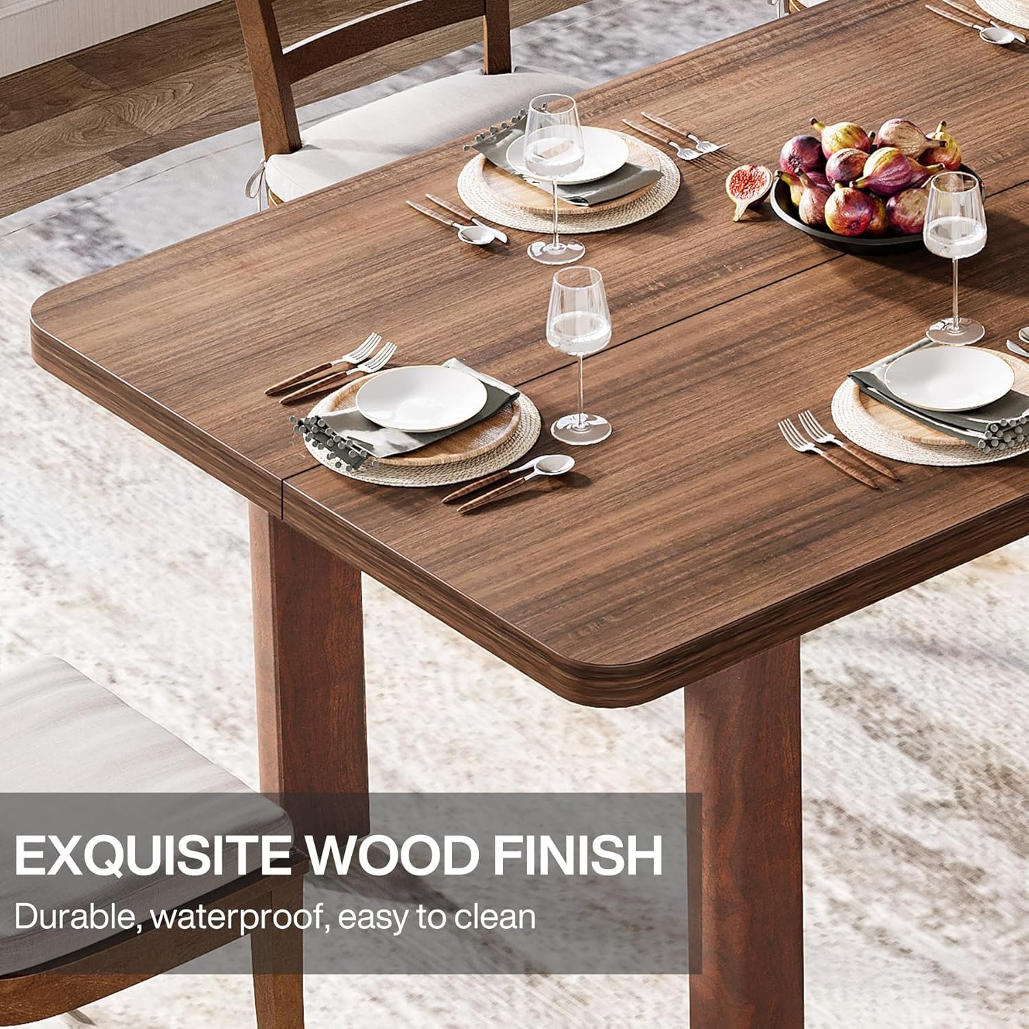 Sturdy and Long-Lasting Structure: Constructed with a premium MDF tabletop and solid wood legs, this dining room table stands out with enhanced durability, stability, and sturdiness. The 1.57″ thickened tabletop and 2.08″ x 3.93″ thickened solid wood legs ensure this dining table provides strong support and longer service time.
