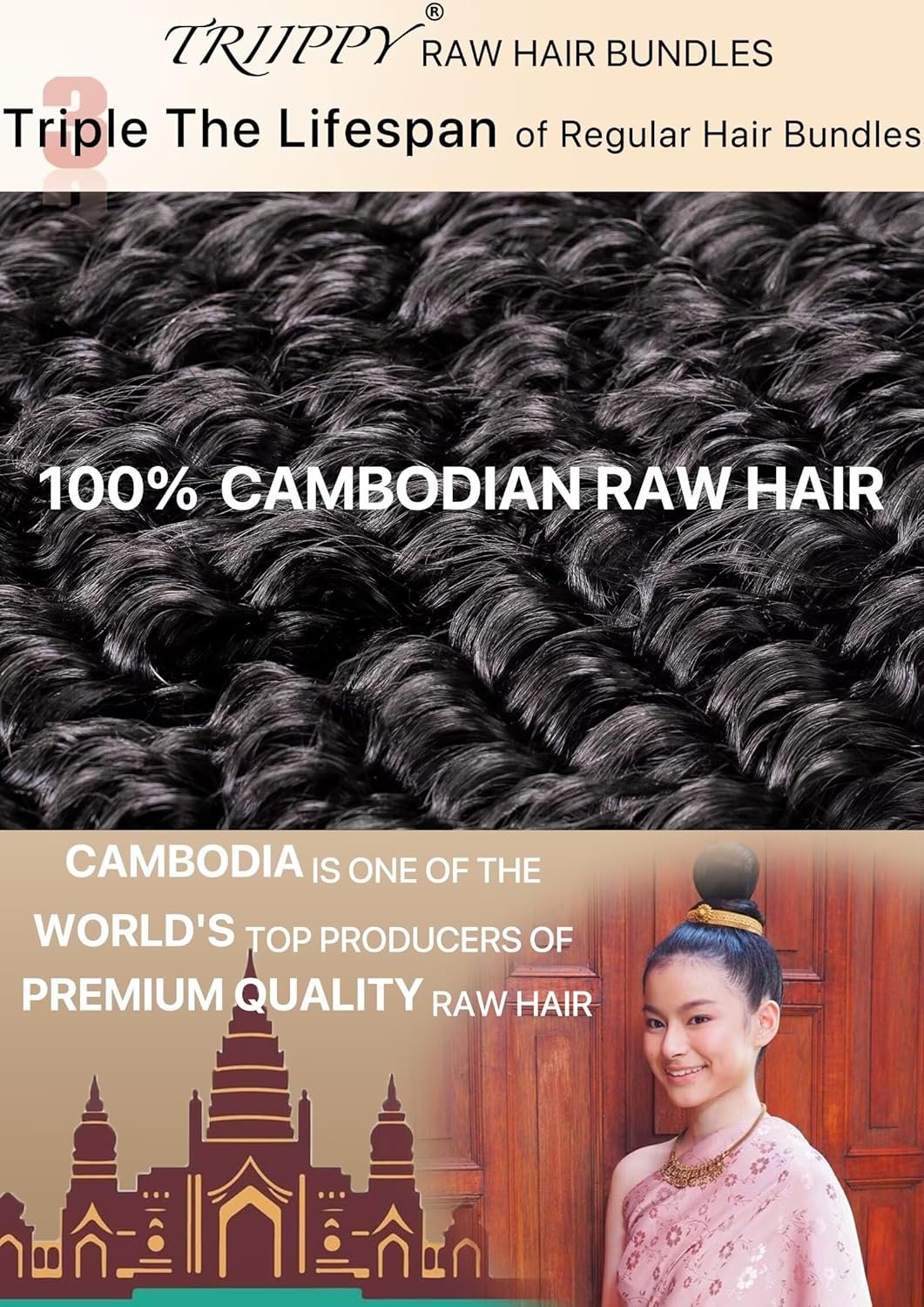 Be the first to review “TRIIPPY Raw Cambodian Human Hair Curly Bundles,Deep Wave Bundles,Triple Lifespan Than Regular Virgin Hair,The Same Quality As Boutique Stores,No.1 Raw Hair Brand On Amazon(3 Bundles,22 24 26 Inches)”