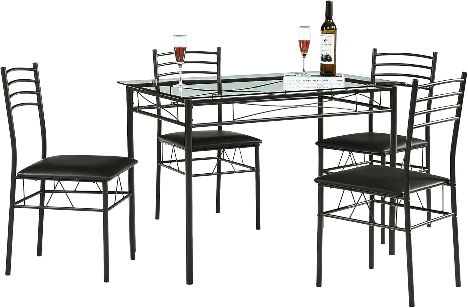 Be the first to review “VECELO Kitchen Dining Table and Chairs Set for 4, Padded Seat & Glasses Tabletop, Space Saving, Matte Black”