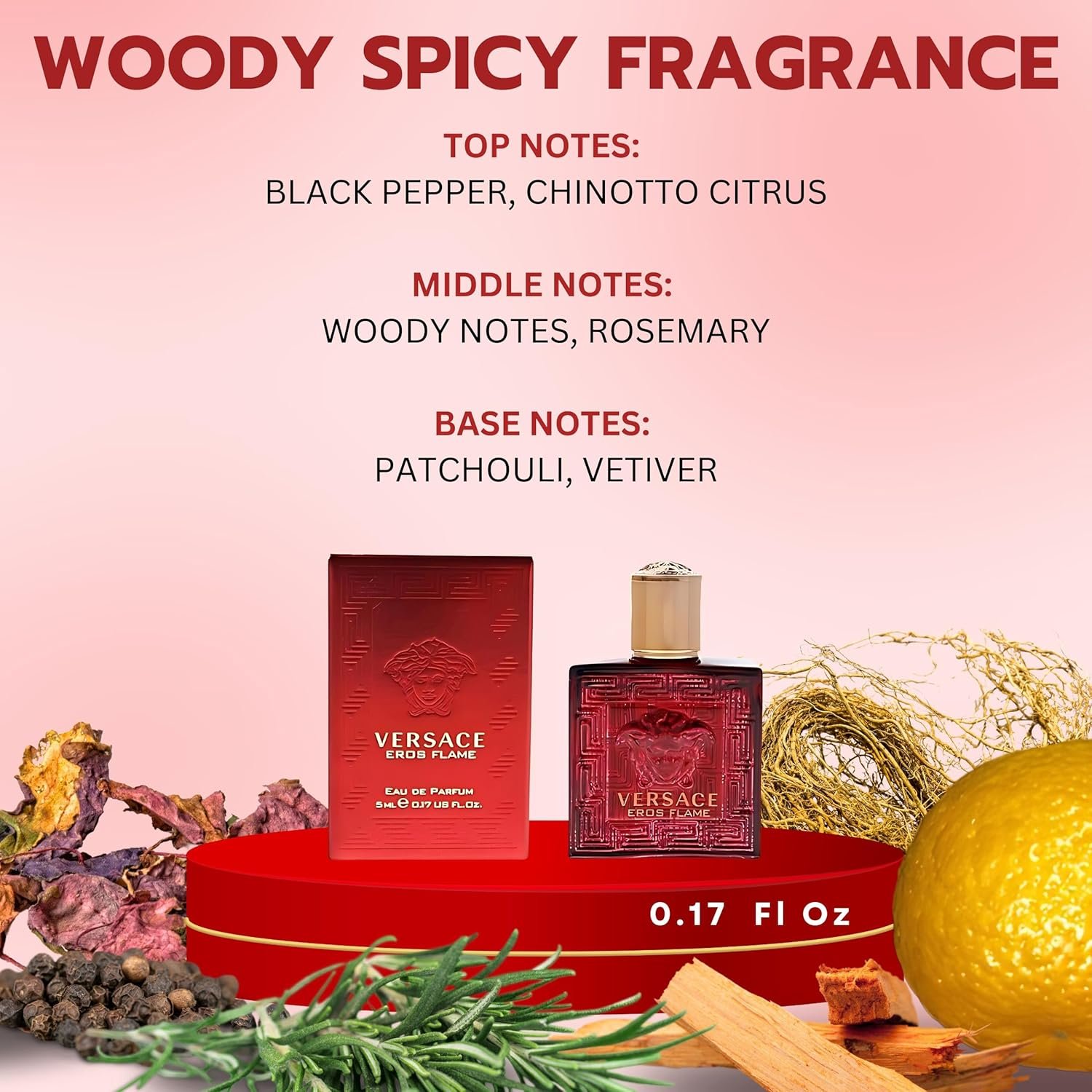 EROS FLAME EDP SPLASH 0.17 OUNCE – A fiery and passionate scent with citrus, spice, and woody notes.