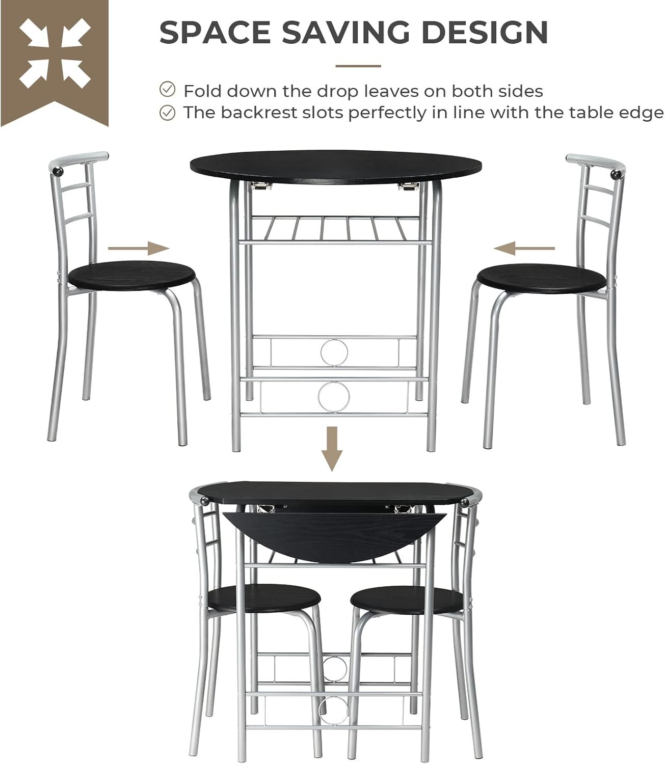 Be the first to review “VINGLI 31.5″ Drop Leaf Dining Table Set 3 Pieces for Small Space,Small Kitchen Table Set for 2,Round Folding Dining Table with 2 Chairs for Home,Kitchen,Apartment,Silver&Black”