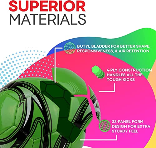 How Does It Stay So Strong?: Athletes want to know they are able to wind up with all their might on these strong soccer balls. Coaches and parents take interest in the details. We chose a butyl bladder rather than less expensive rubber options to ensure our soccer balls have staying power, better responsiveness, and great shape and air retention all season long. Thick, 4-ply construction in a 32-panel form makes it even more durable. (Ships Deflated, No Pump)